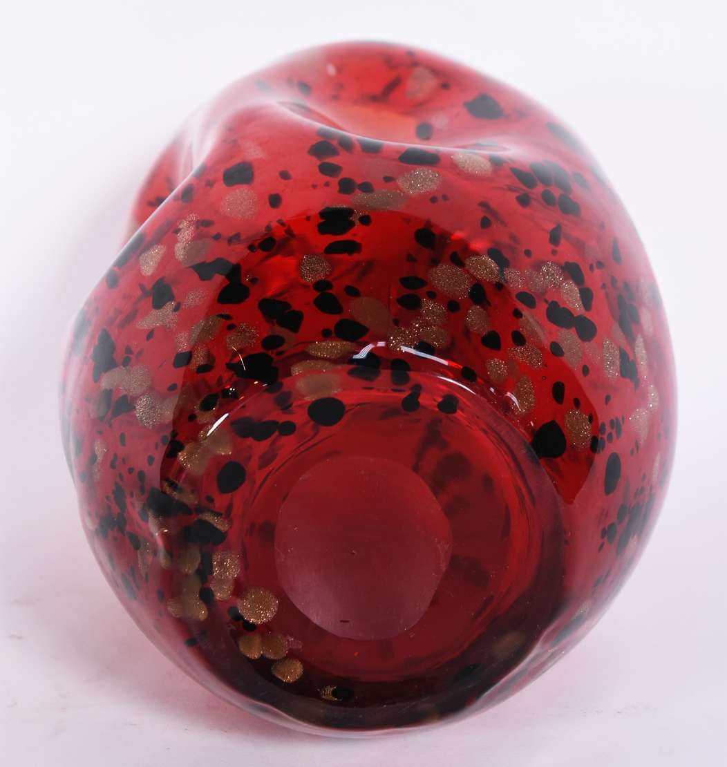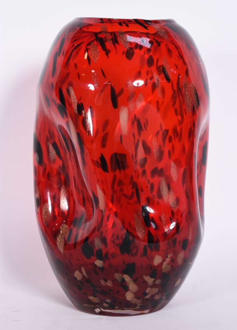 Vaso de vidro decorativo na cor verde com pó de ouro.