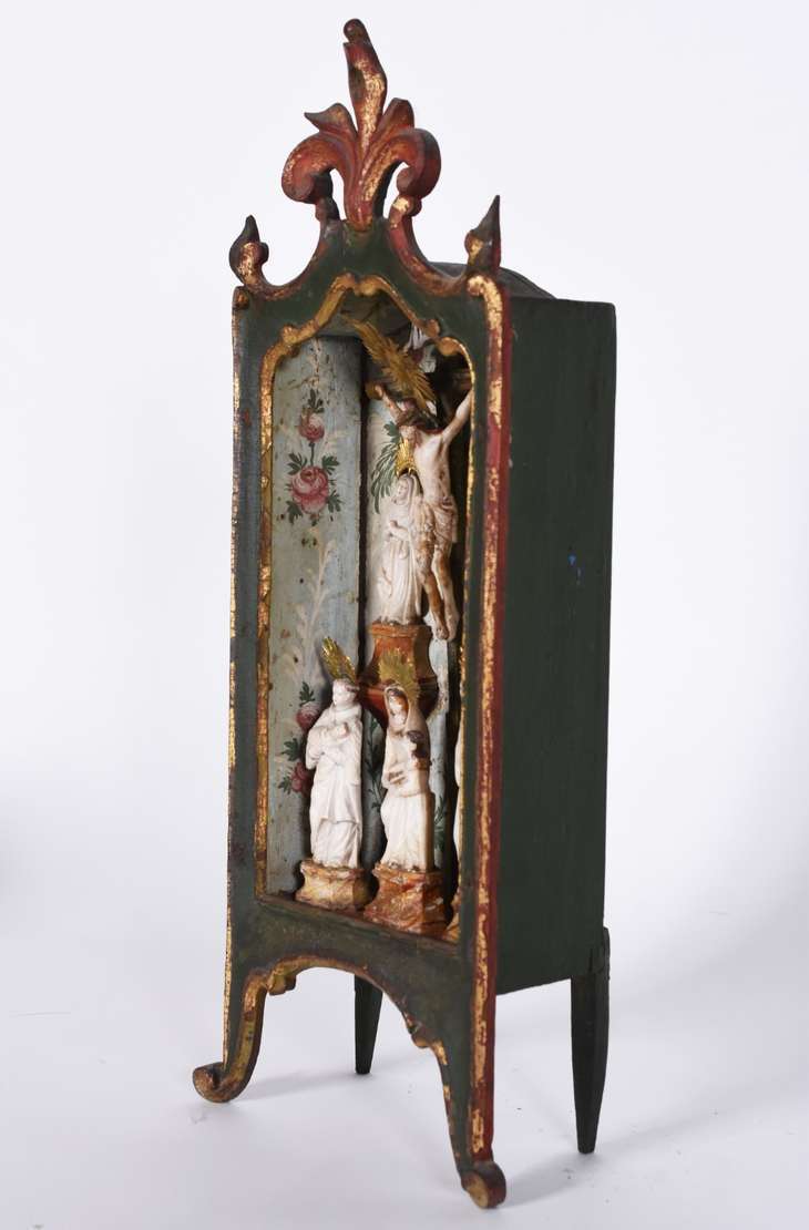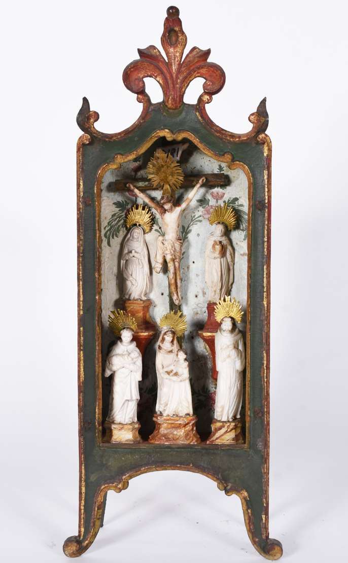 São Jorge flechando o dragão - Imagem de madeira policromada e realces dourados. Pintura com restauro.