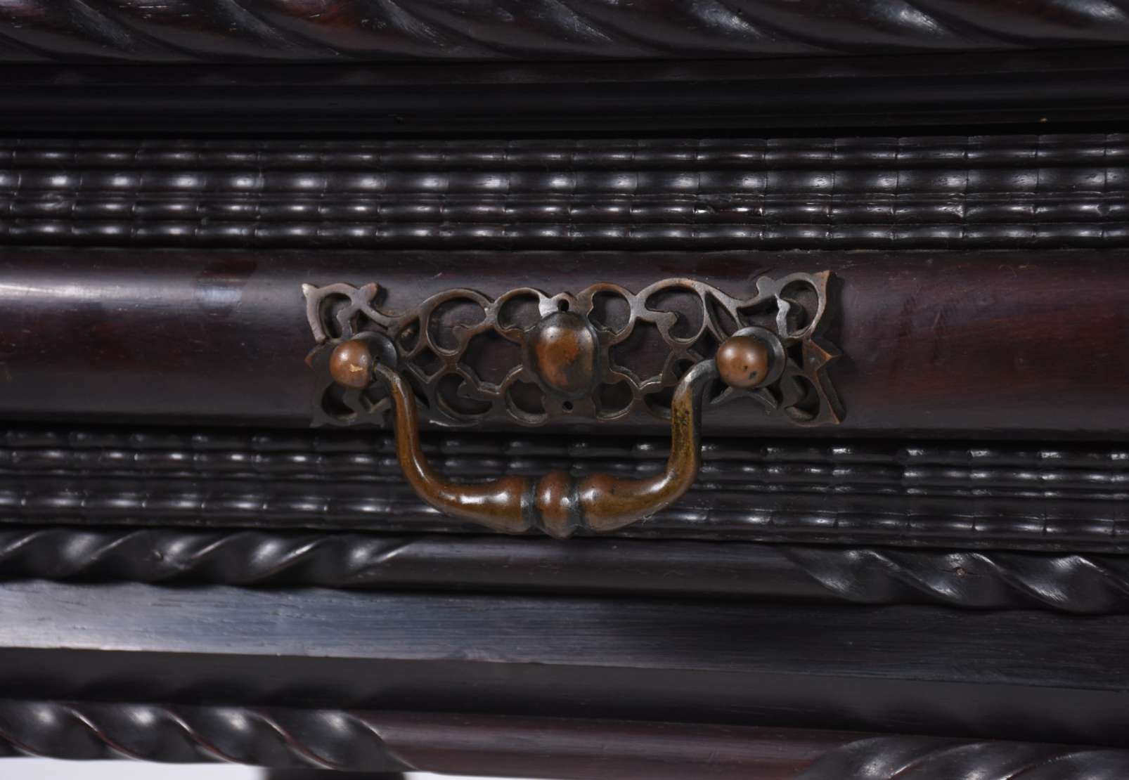 Pequeno oratório de madeira nobre, duas portas com almofadas em relevo, parte interna com moldura frontal recortada, ...