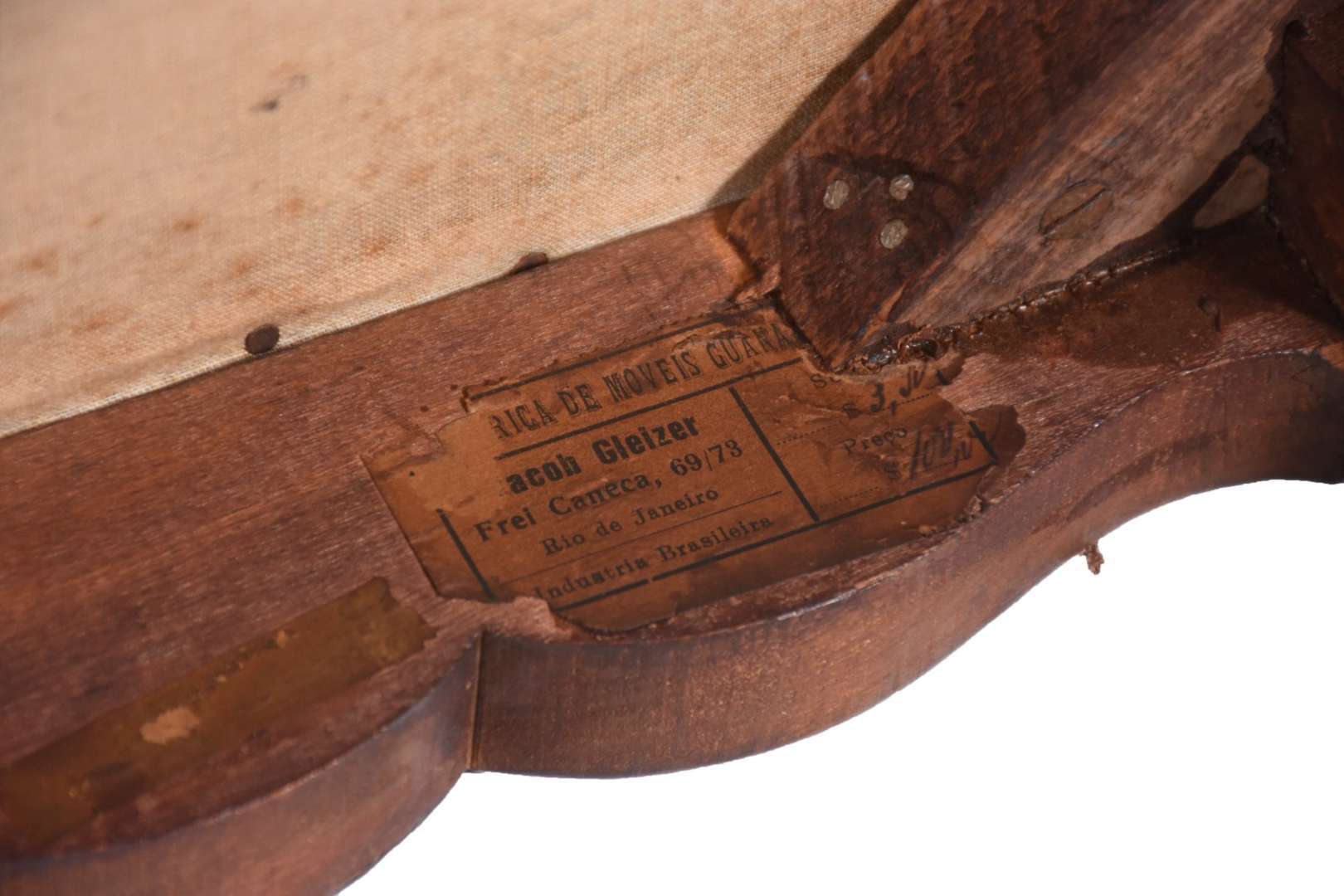 Conjunto de sofá para 3 lugares e par de poltronas estilo Dom José em jacarandá. Assentos e faixa central dos encosto...