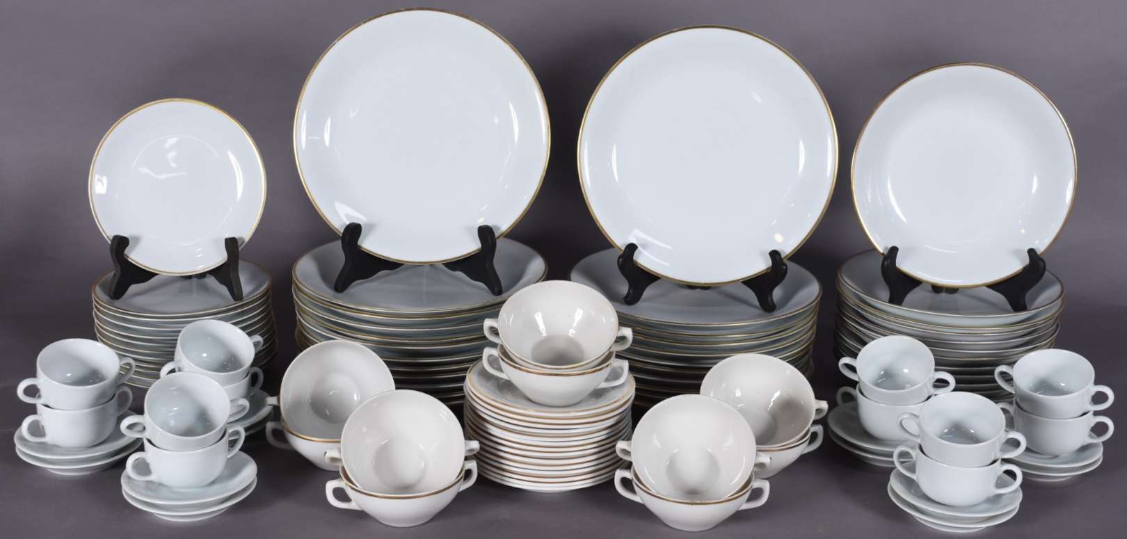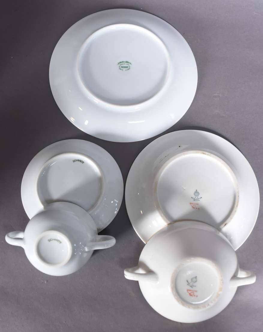 Conjunto de jantar de porcelana chinesa decorados com figuras de gueixas em policromia, composto de: 17 pratos rasos ...