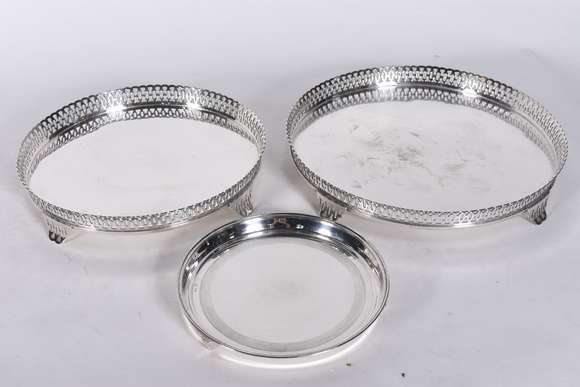 Três peças de metal prateado.