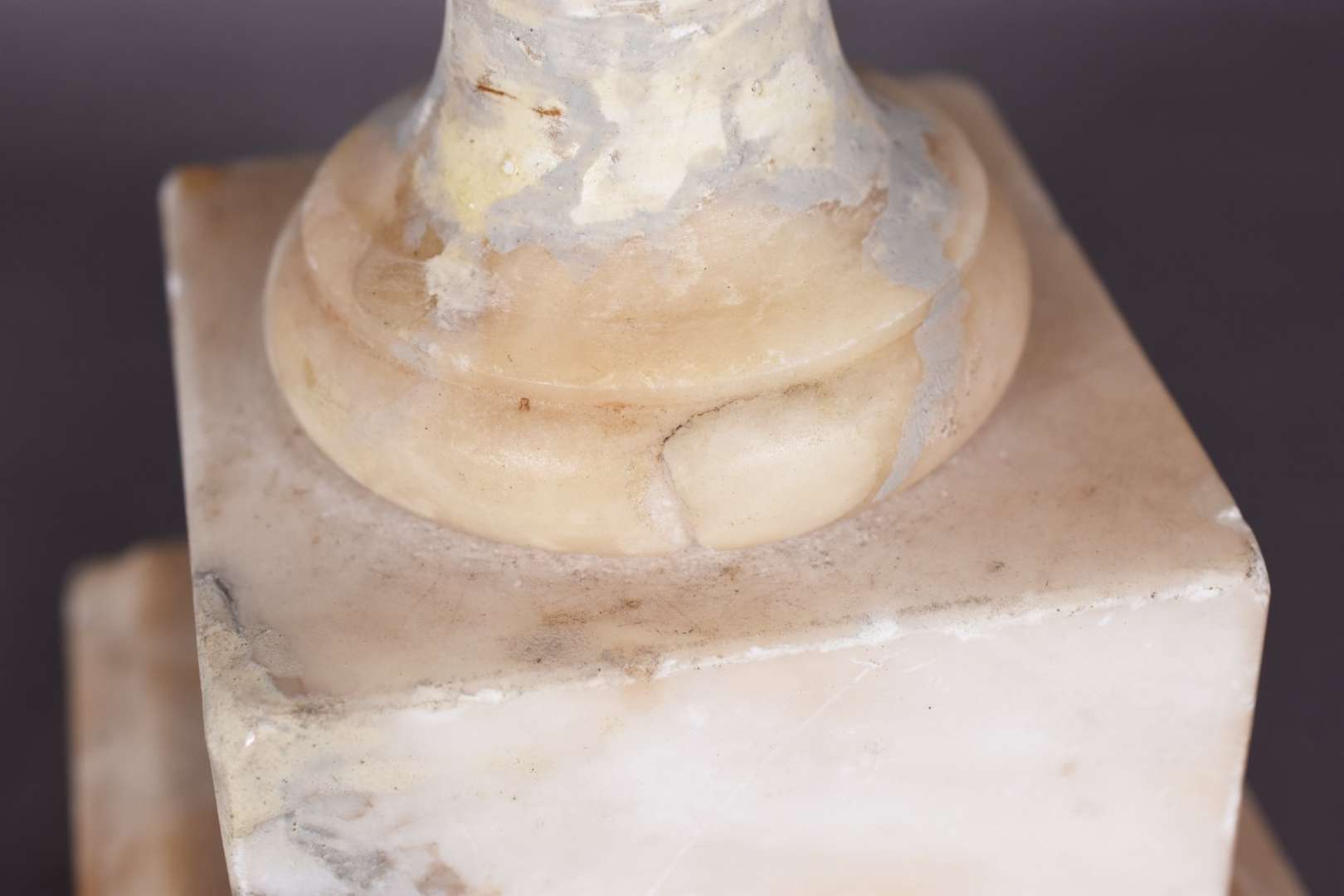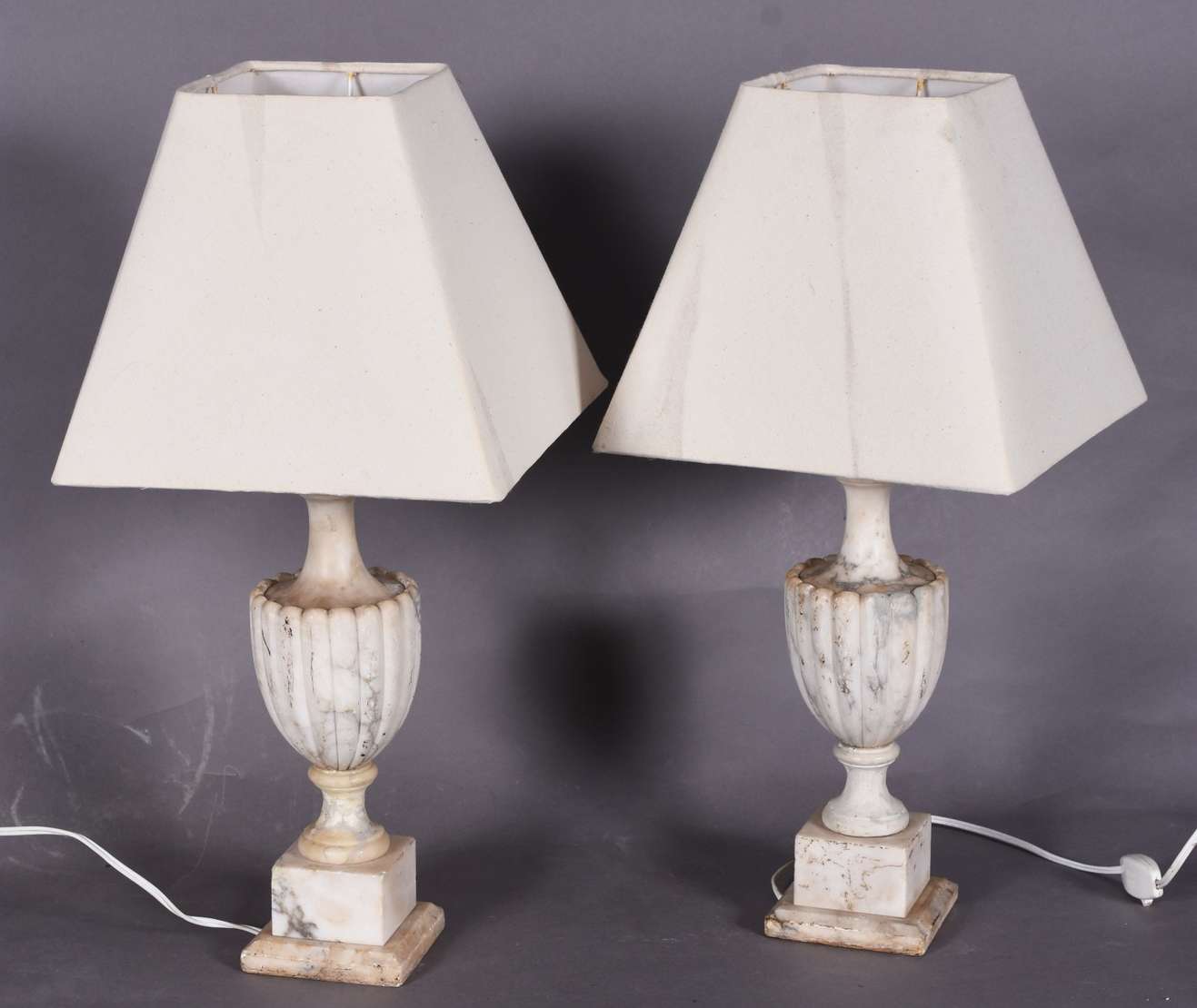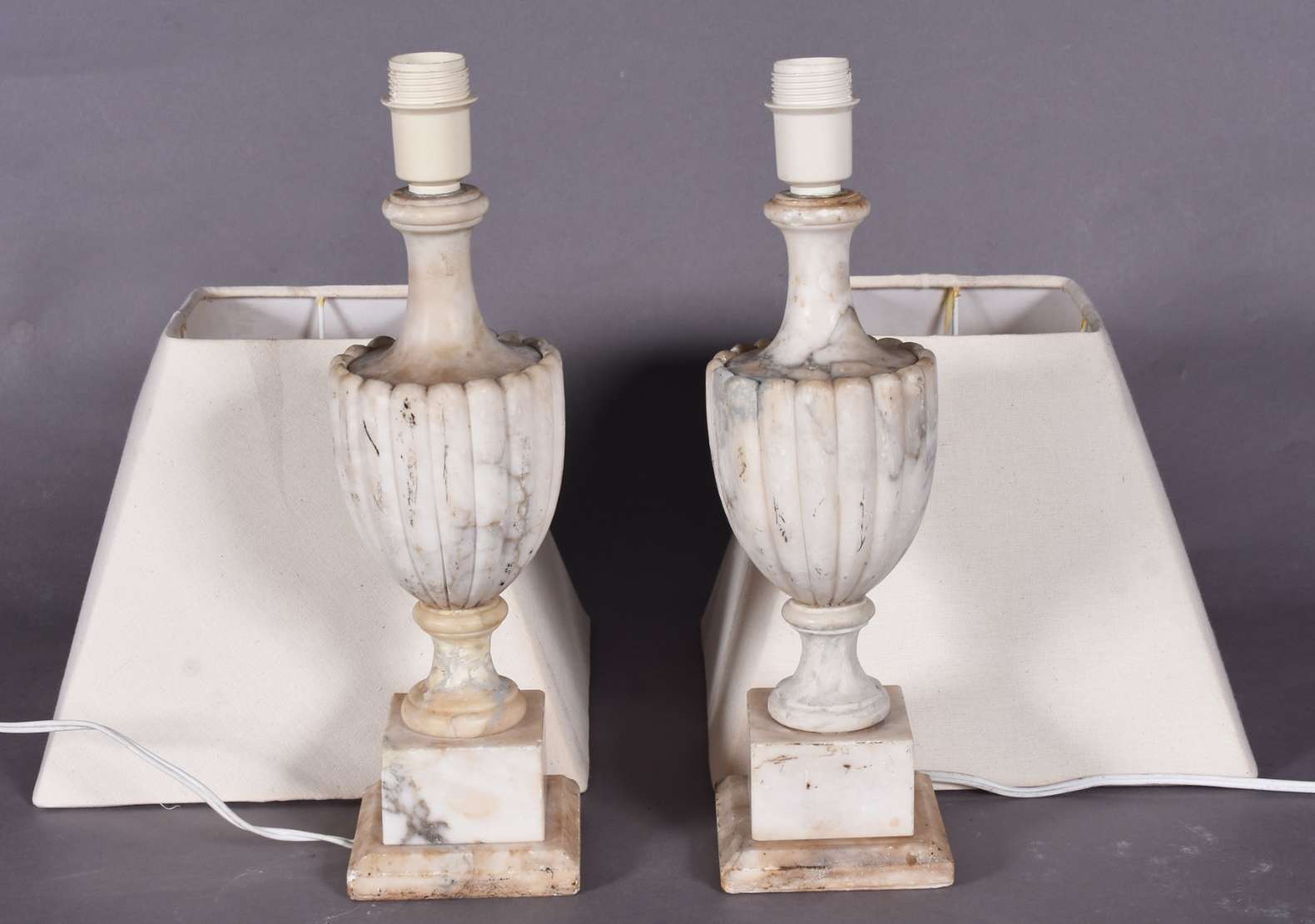 Par de abatjoures de alabastro, acompanham cúpulas na cor bege.