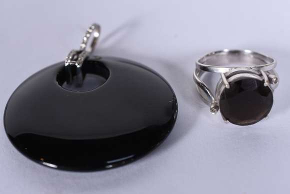 Conjunto de ouro branco com pedra ônix e pendente (Por motivos de segurança a peça não se encontra na loja)