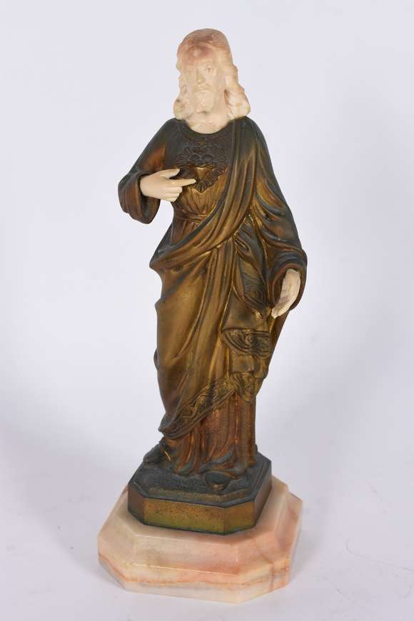 Sagrado Coração de Jesus - Escultura de bronze e marfim. Assinada. Base de onix.