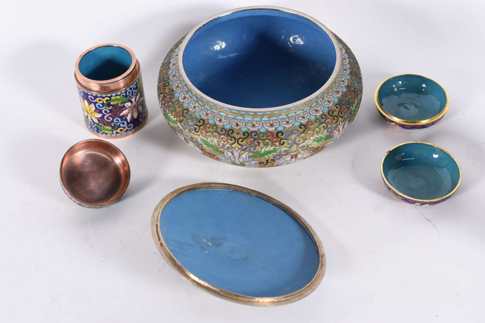 Sete peças diversas, sendo 3 estatuetas representando figura feminina (uma colada), bowl com pássaro, bowl de cloison...