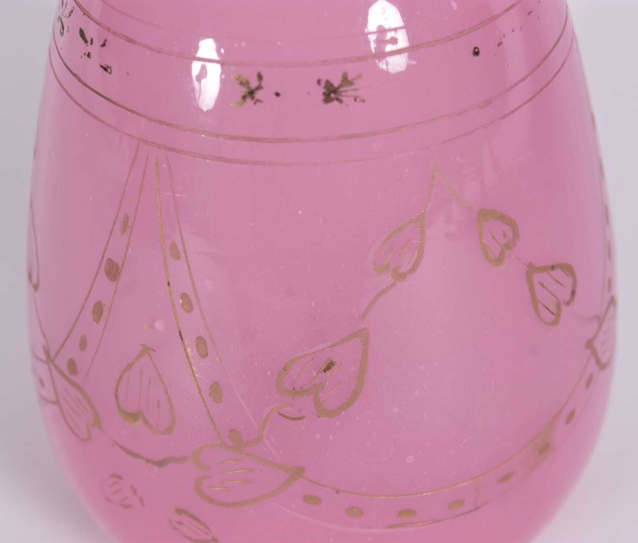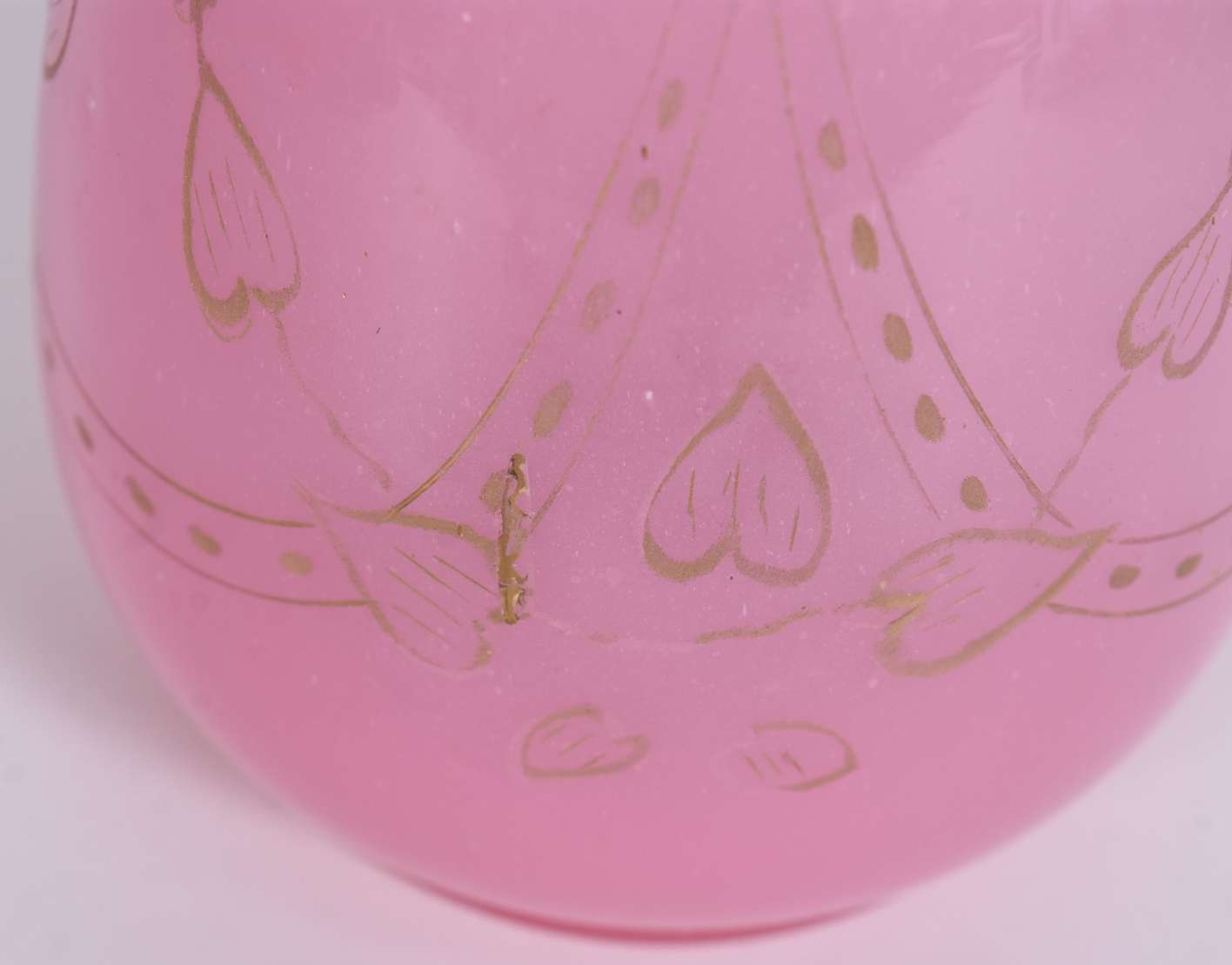 Antigo vaso de opalina branca com flores em policromia, resquícios de grega dourada na base.