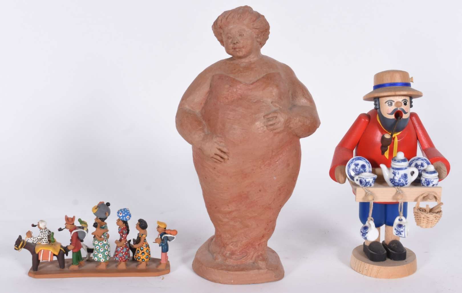 Duas esculturas de petit bronze, uma delas representando cavalo com base de madeira, e a outra, figura feminina com b...