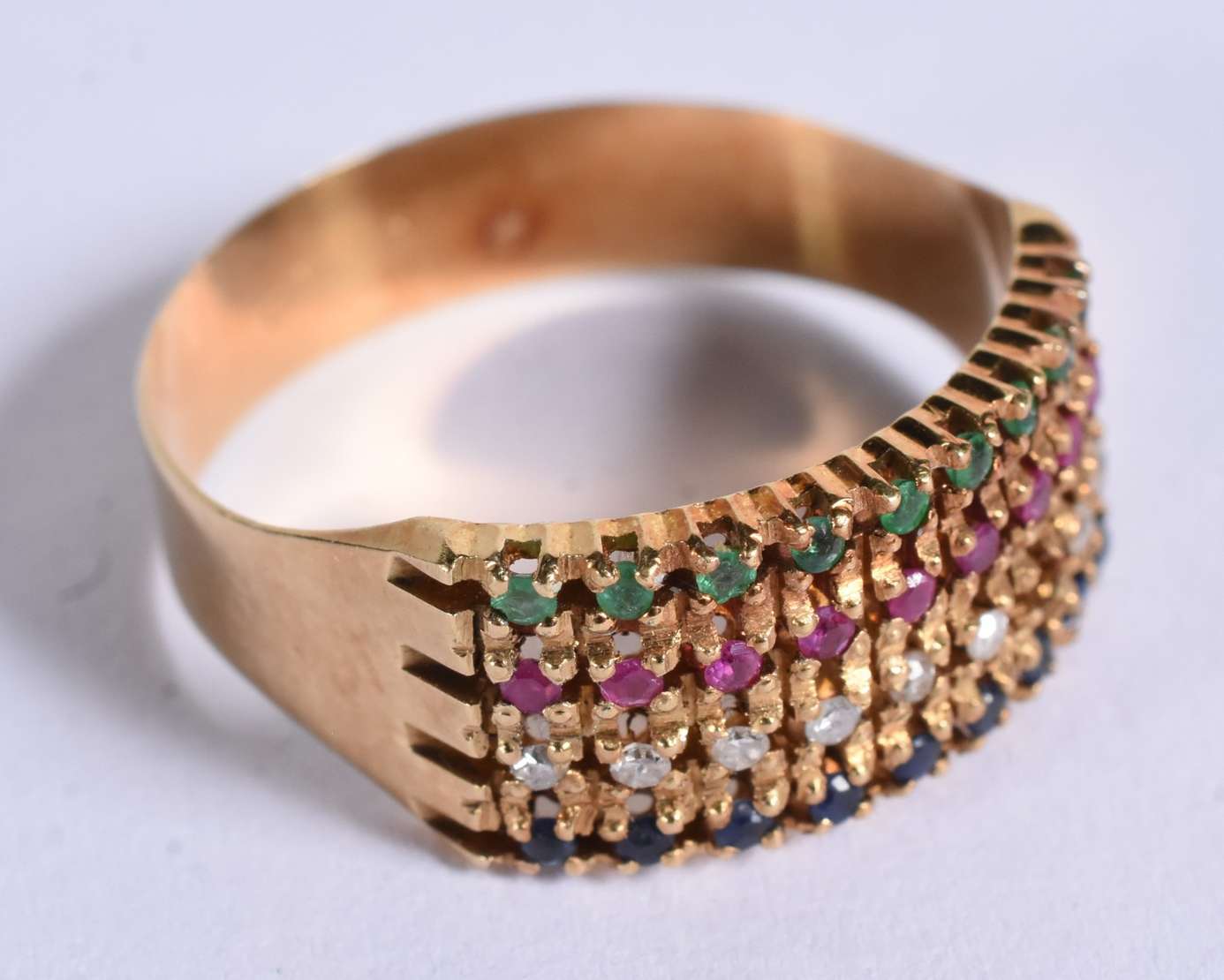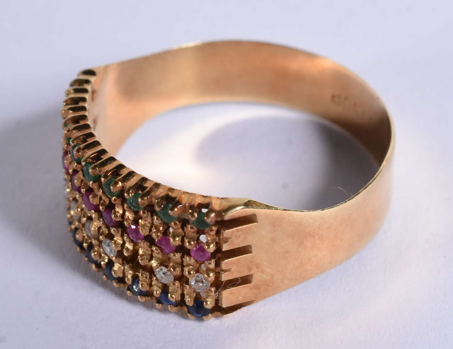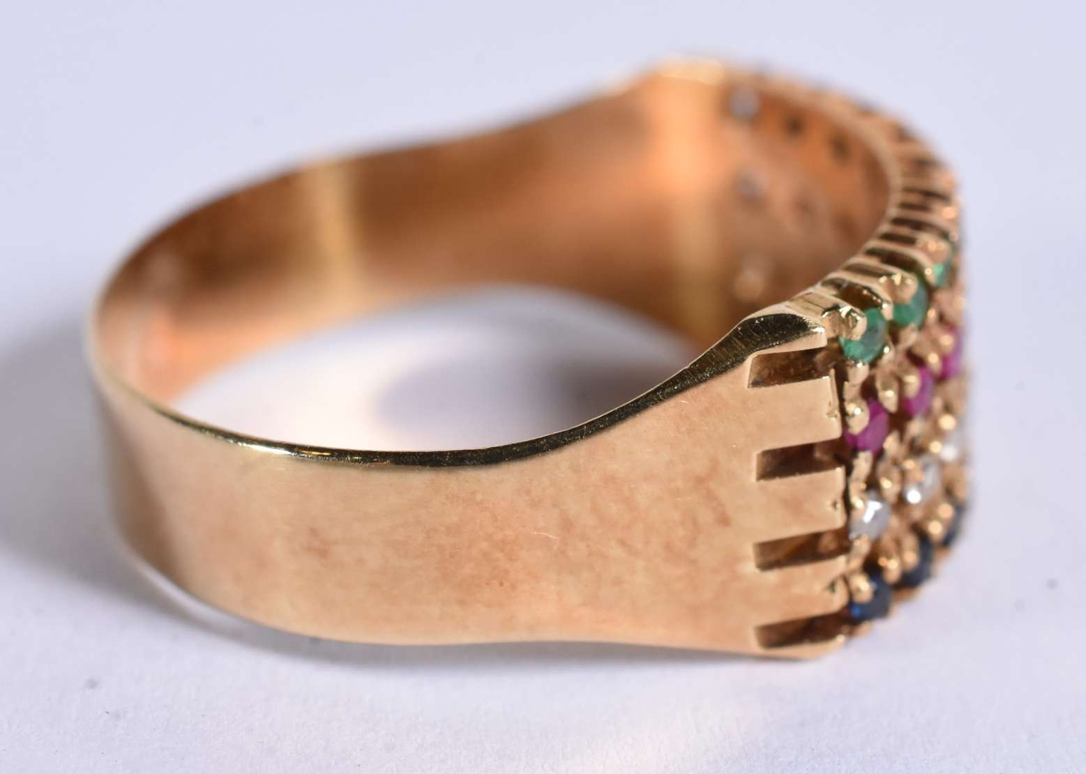 Anel de ouro 18 k com pedras brasileiras, aro 17 (Por motivos de segurança a peça não se encontra na loja)