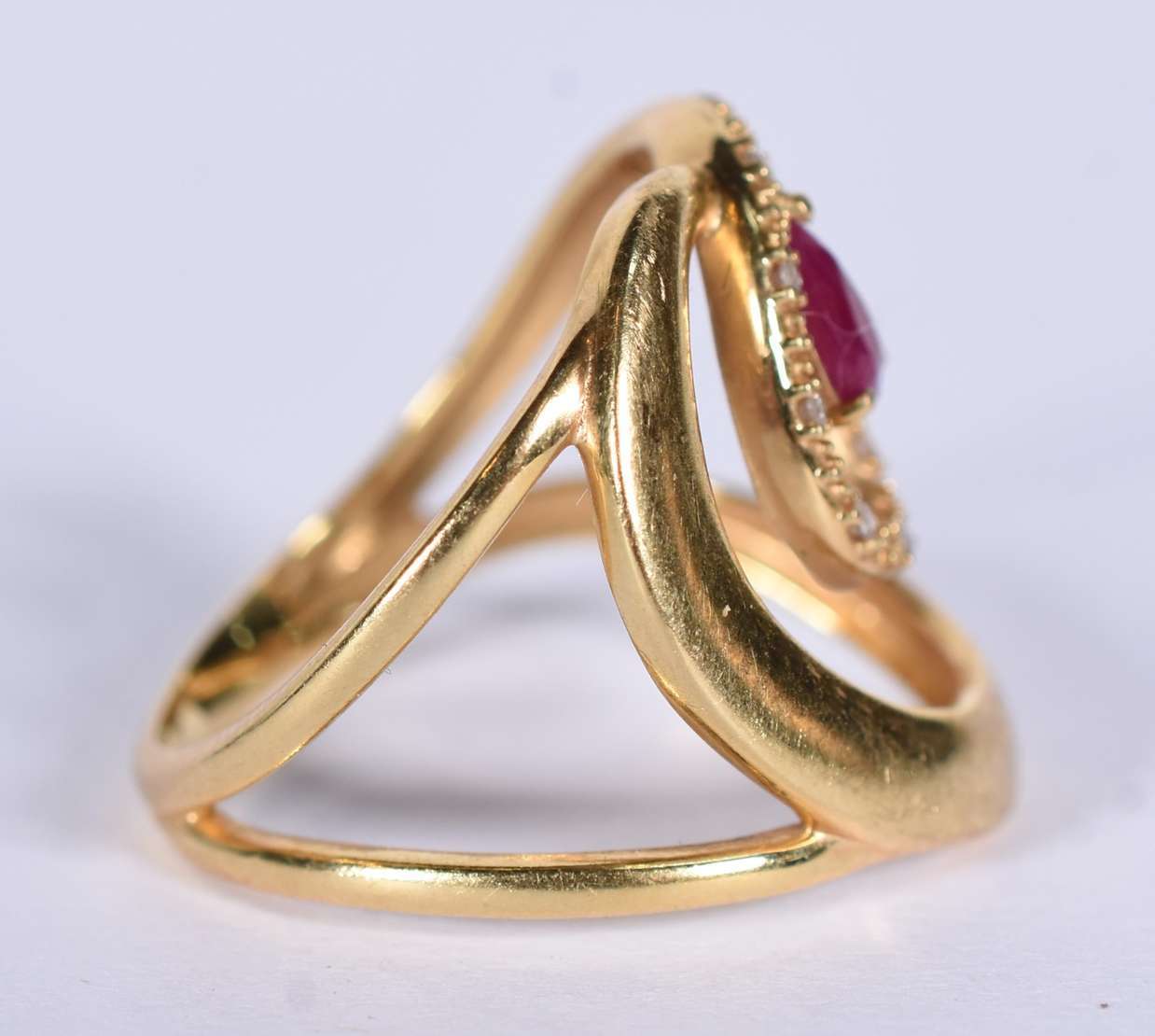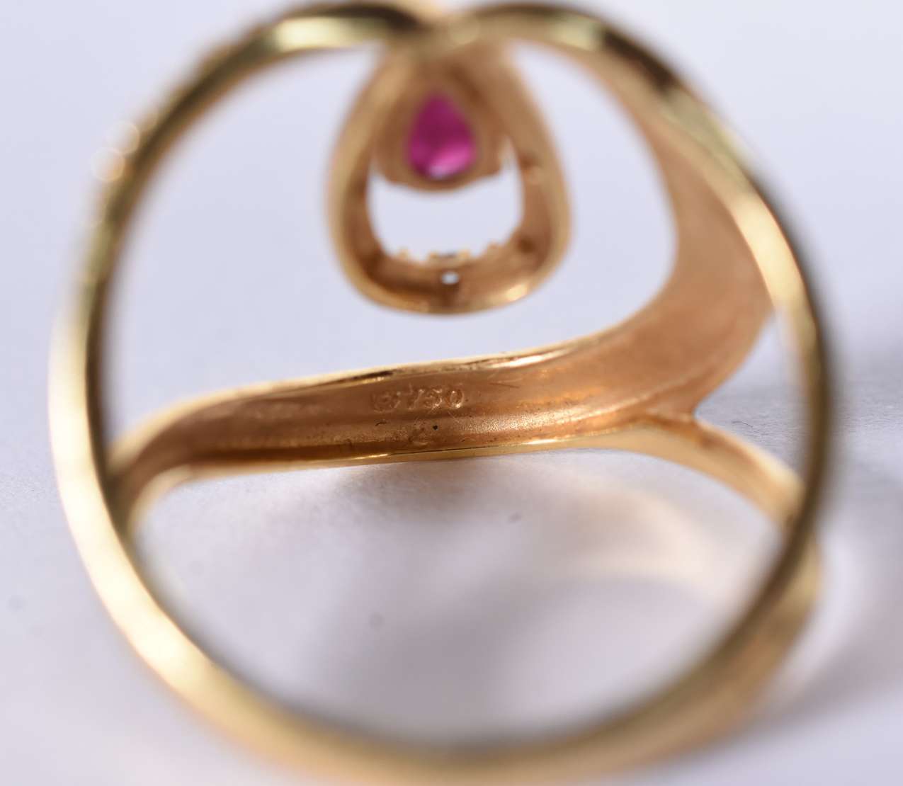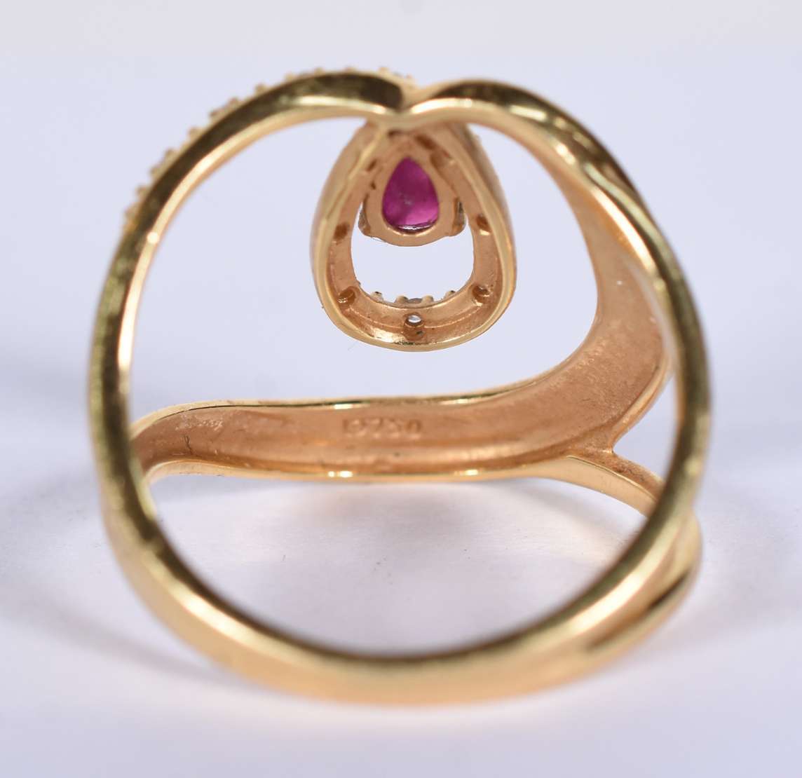 Anel de ouro branco cravejado com pedras vermelhos, aro 15 (Por motivos de segurança a peça não se encontra na loja)