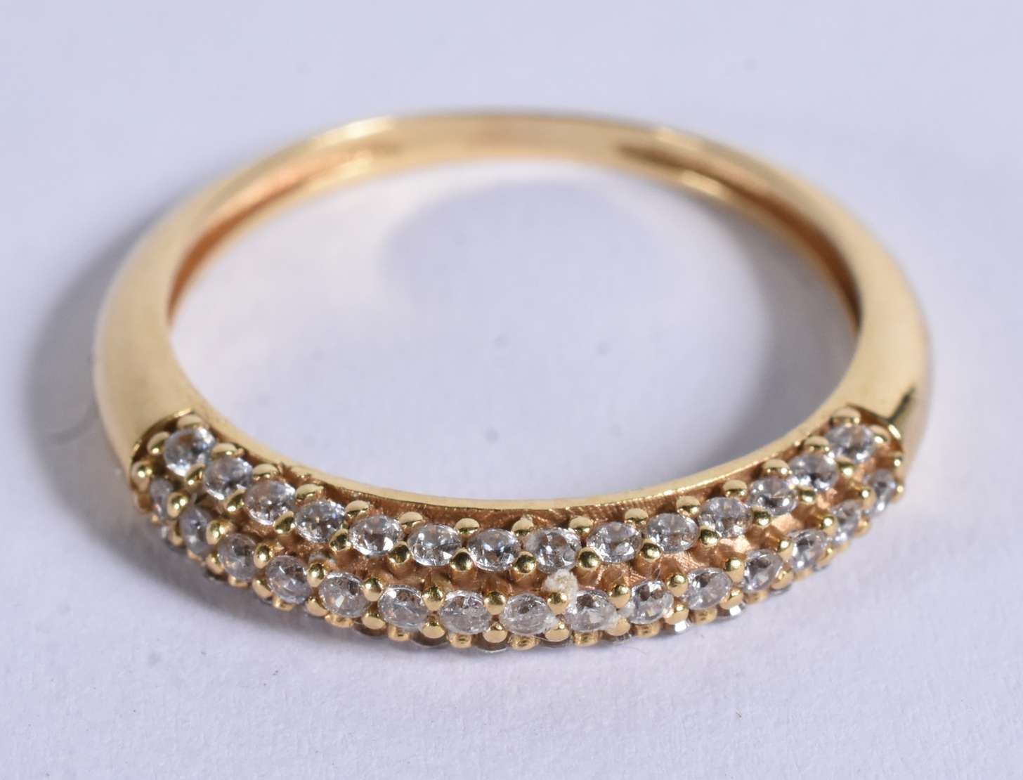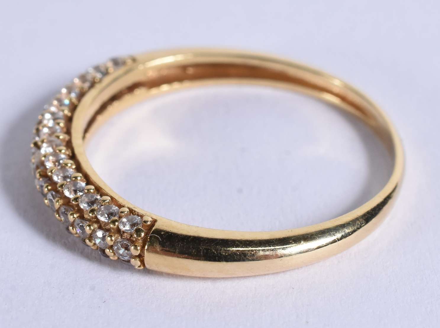 Anel de ouro 18 k, contraste 750, cravejado com safiras brancas, aro 17 (Por motivos de segurança a peça não se encontra na loja)