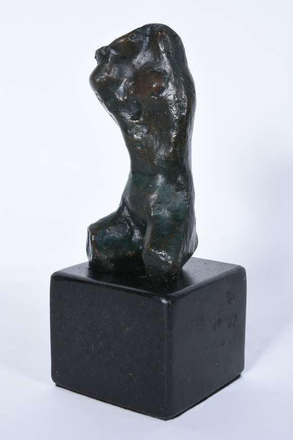 Escultura de bronze patinado sobre base de mármore. Assinado.