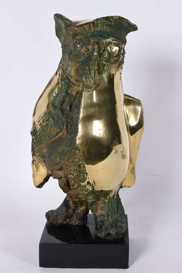 Escultura de bronze representando coruja. Assinado.