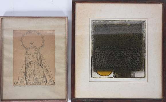 Nossa Senhora - desenho - datado 1946 (com desgastes) e Gravura P.A - VI (com fungos).