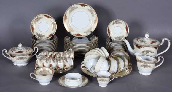 Serviço de chá e café de porcelana Noritake composto de: 12 xícaras de chá com pires (com alguns bicados), 12 xícaras...