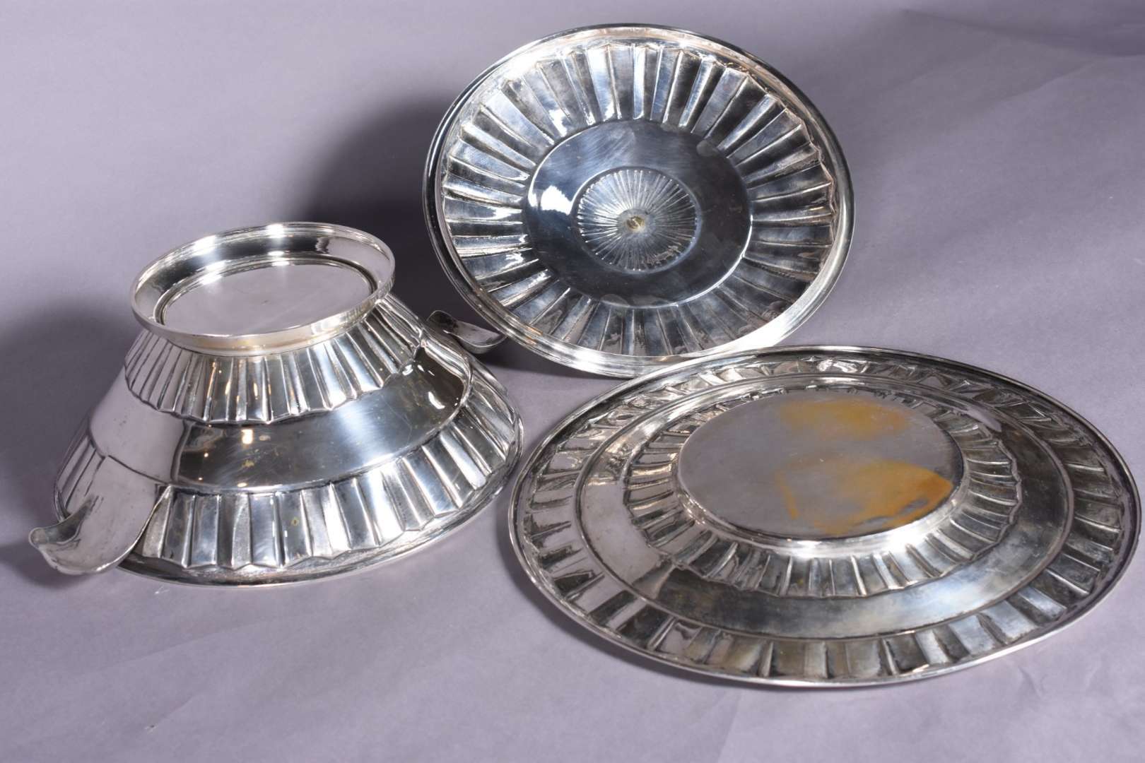 Baixela para chá e café de prata portuguesa contraste Águia, decorada com concheados em relevo. Composto de 4 peças, ...