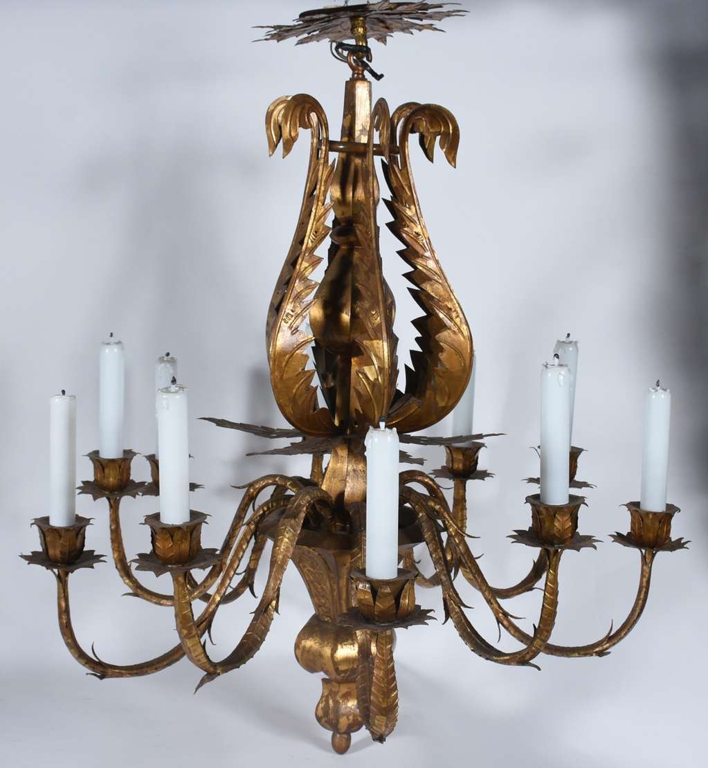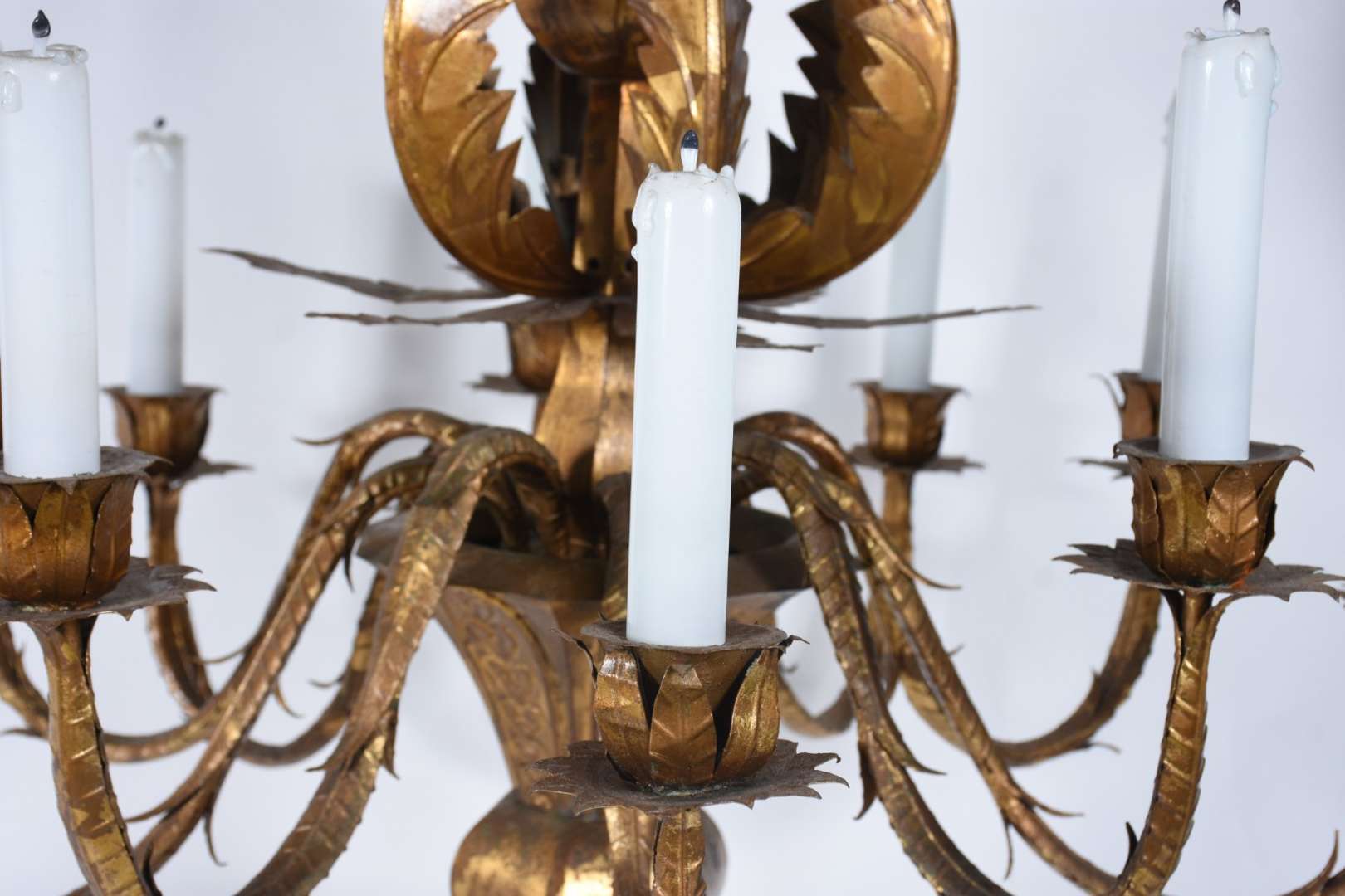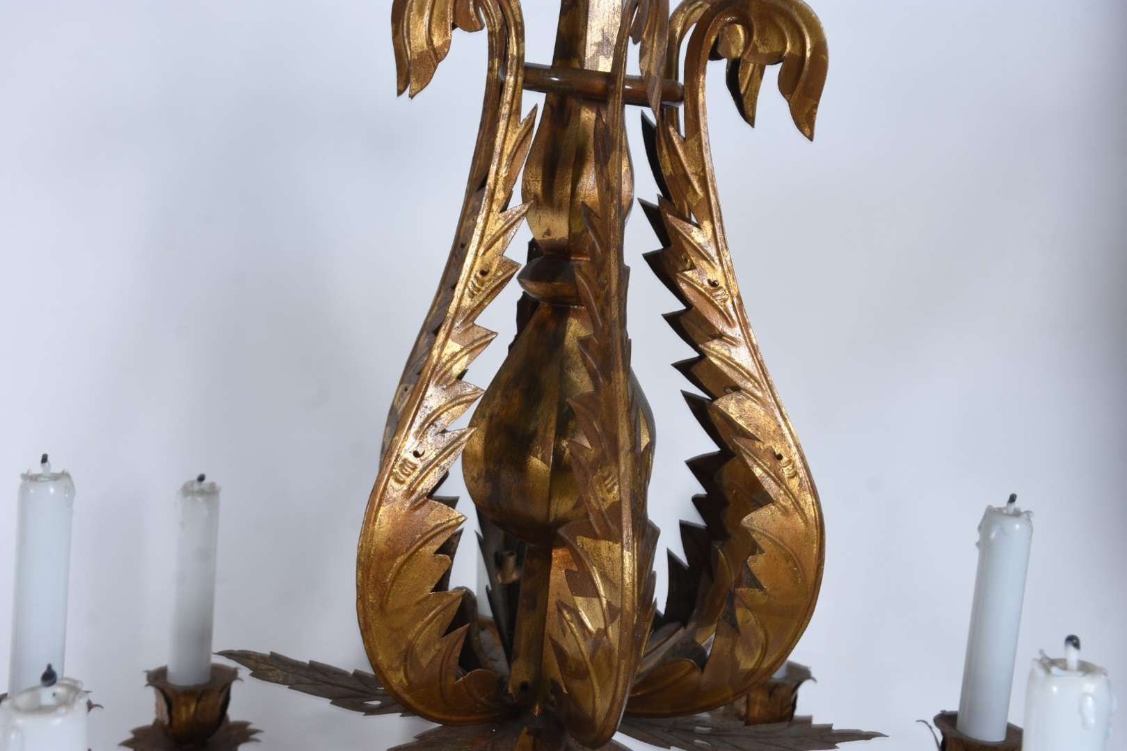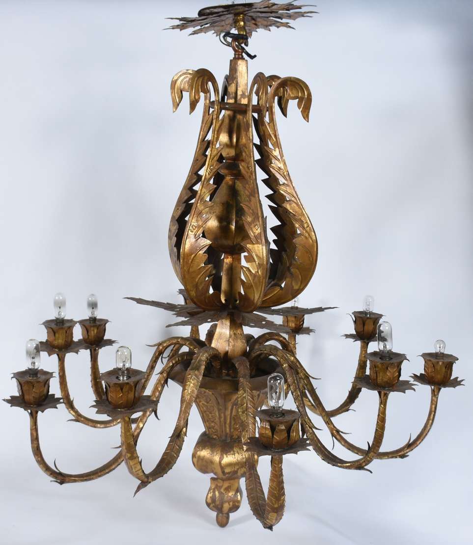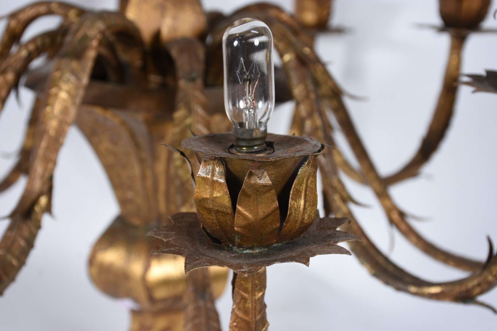 Elegante Lustre de metal dourado na forma de folhas, para 10 luzes, velas de opalina branca - Fundação Espirito Santo - Portugal.