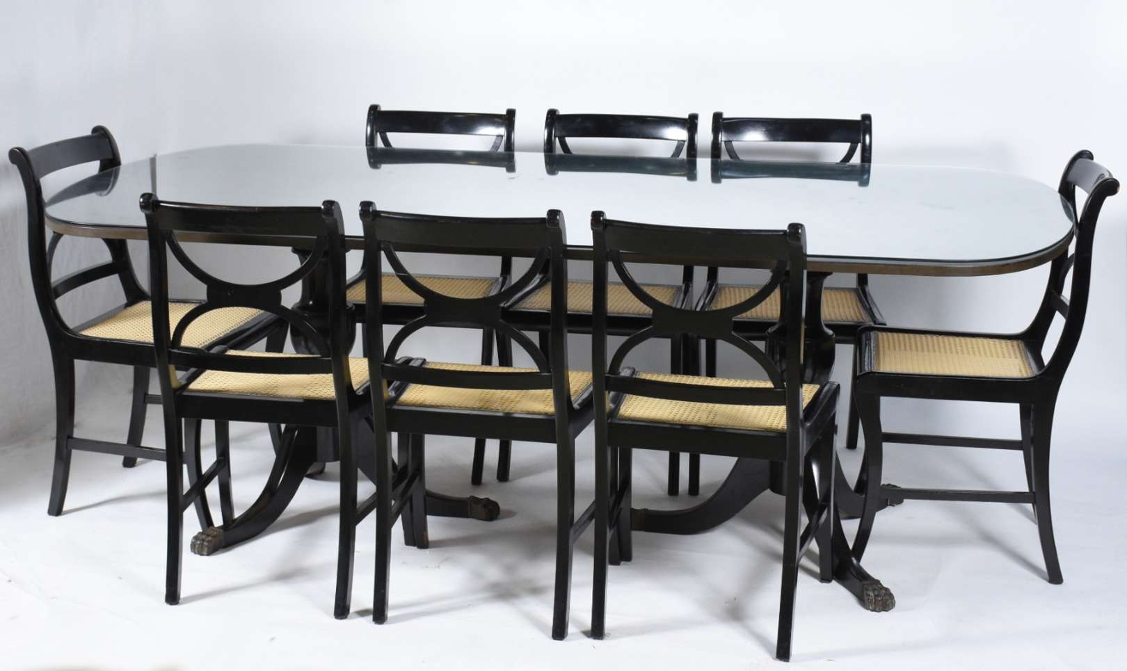 Móvel/ bar de madeira nobre patinada de preto com pequenas flores em policromia, parte interna com espelho, estilo Ch...