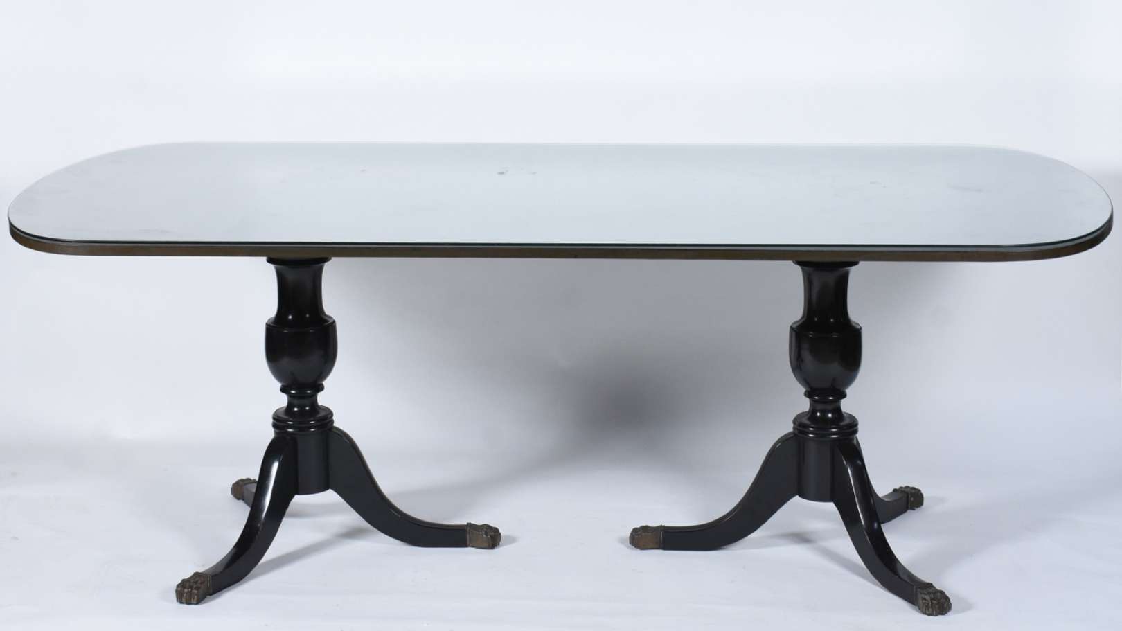 Aparador de madeira nobre, base feitio balaústre, tampo feitio retangular com mármore rajado. Tampo adaptado.
