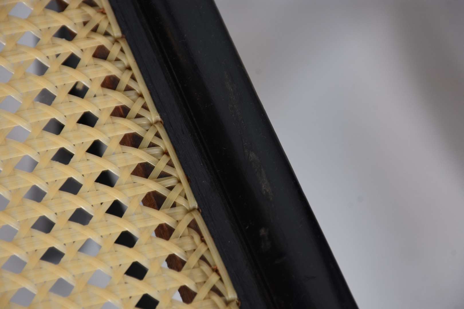 Duas peças de madeira nobre, sendo cadeira singela estilo Luis XV com assento de palhinha e, pequena mesa auxiliar co...