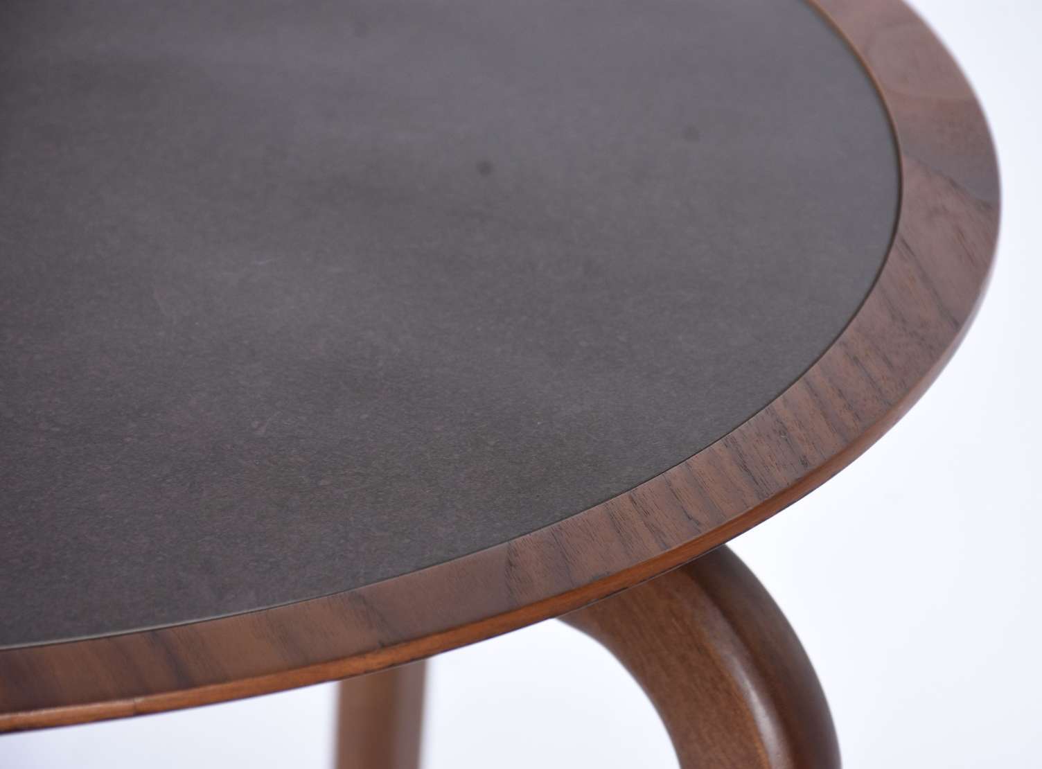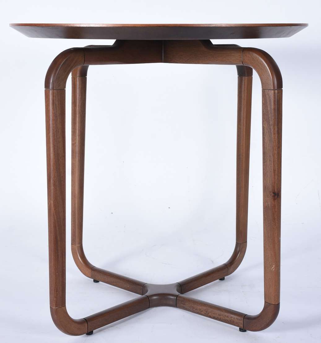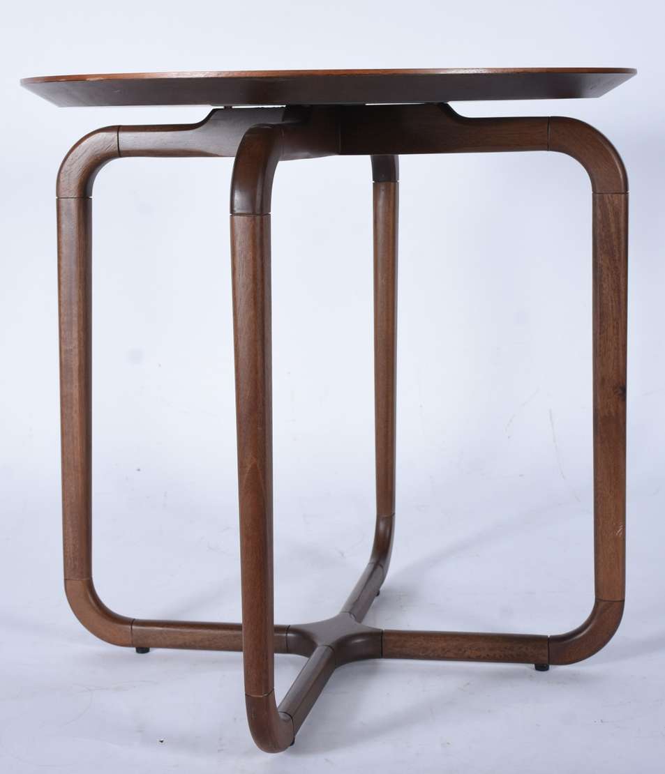 Mesa de madeira nobre feitio oitavado, saia entalhada, pernas torneadas ligadas por traves inferiores. Com desgastes.