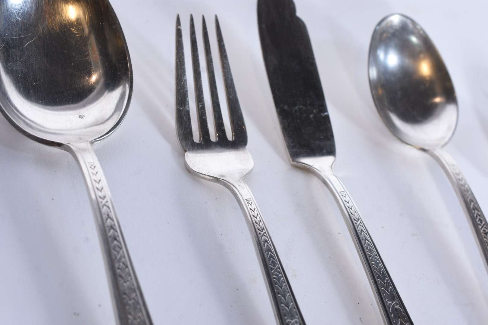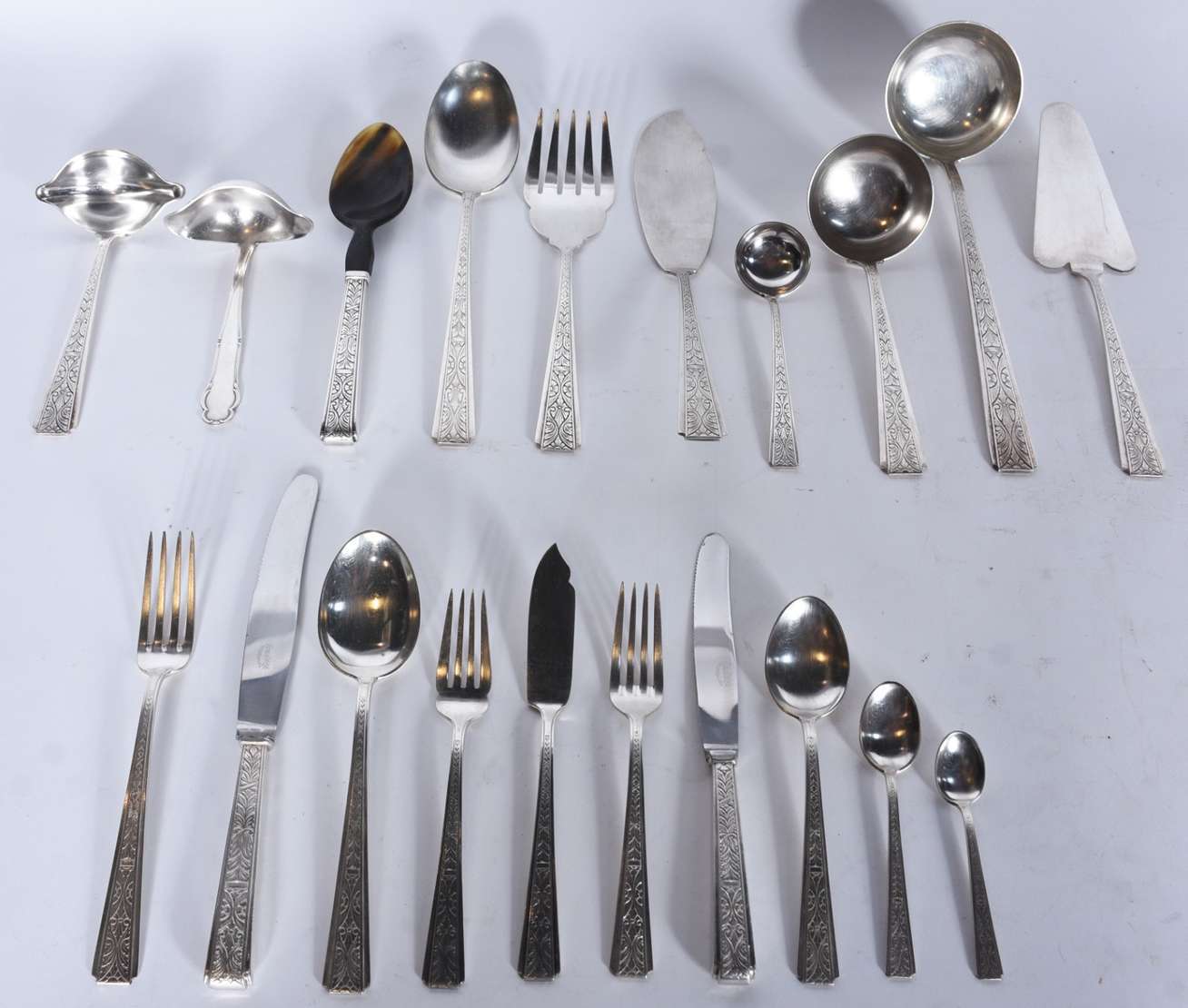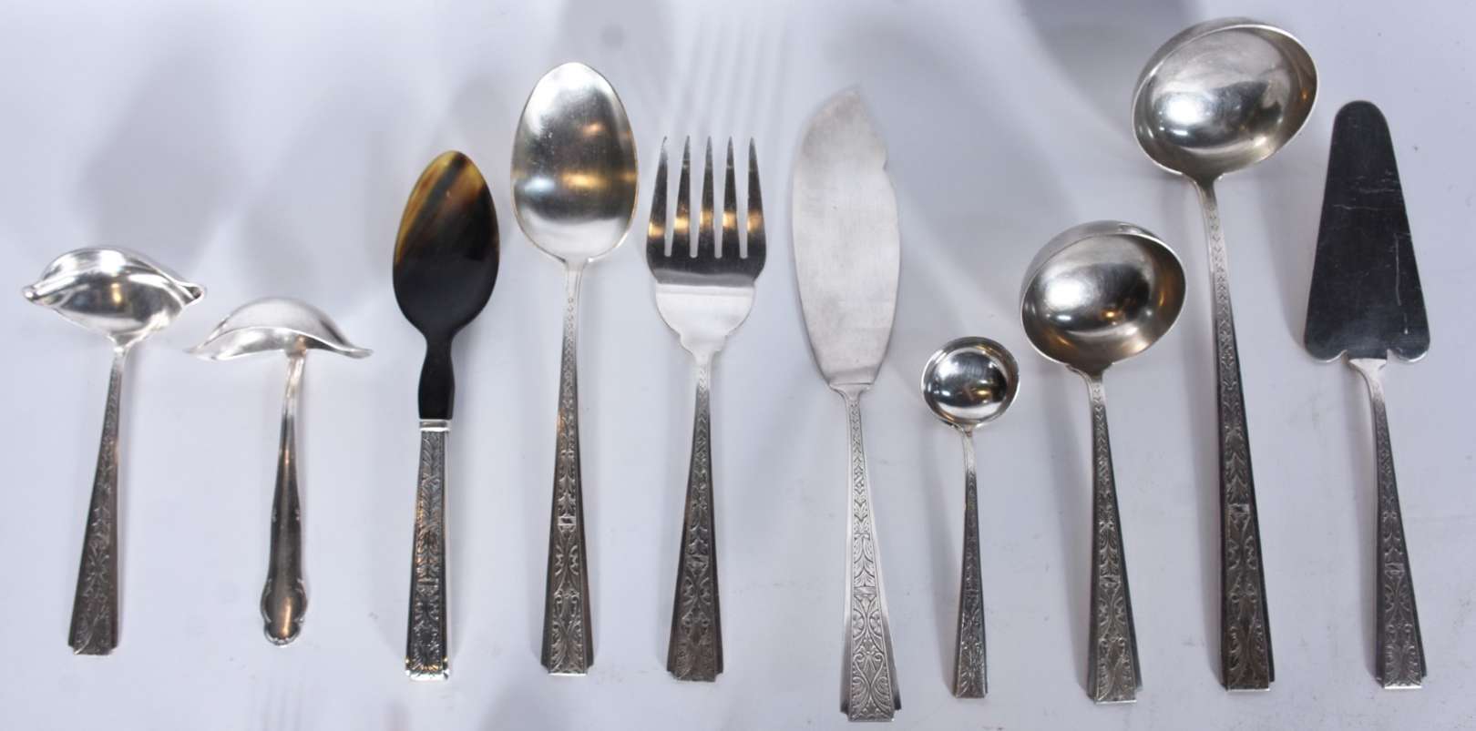 Faqueiro de metal prateado modelo "Imperial America", composto de: 12 colheres, 12 garfos, 12 facas grandes; 12 colh...