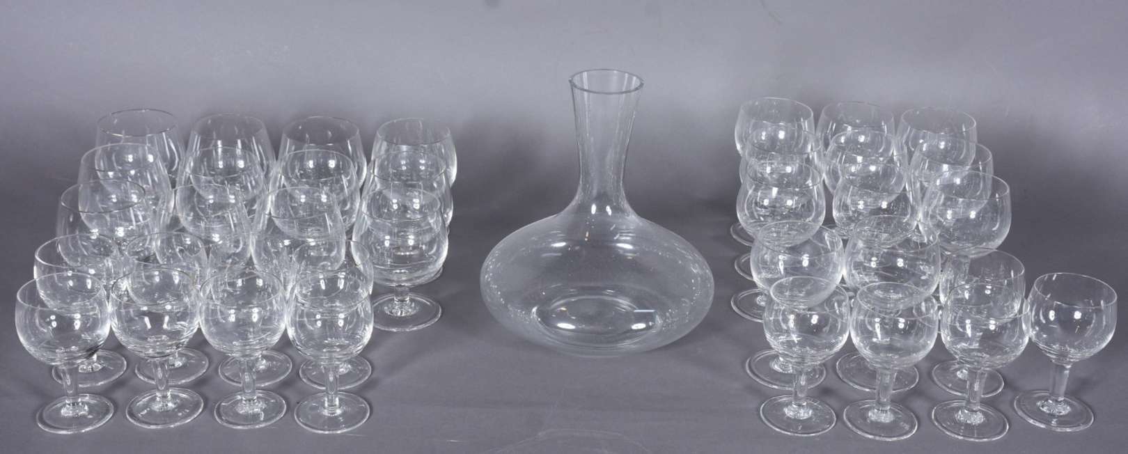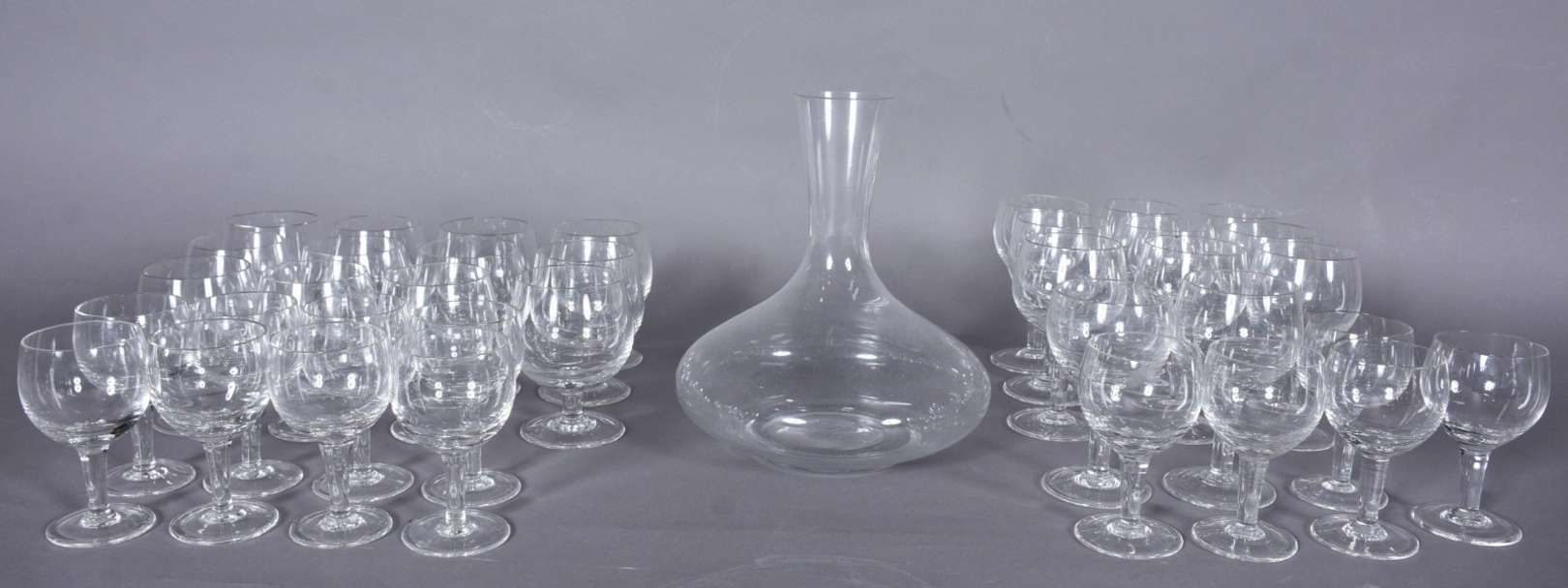 Serviço de taças de vidro na cor uva, composto de: 6 para vinho (1 com bicado) e 6 para champagne (1 com bicado). Tot...