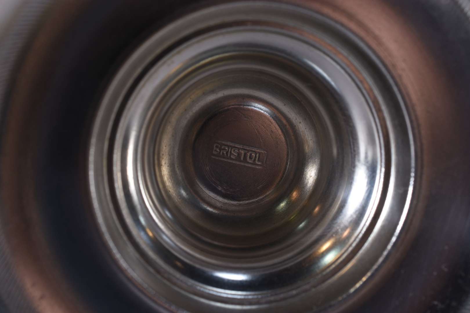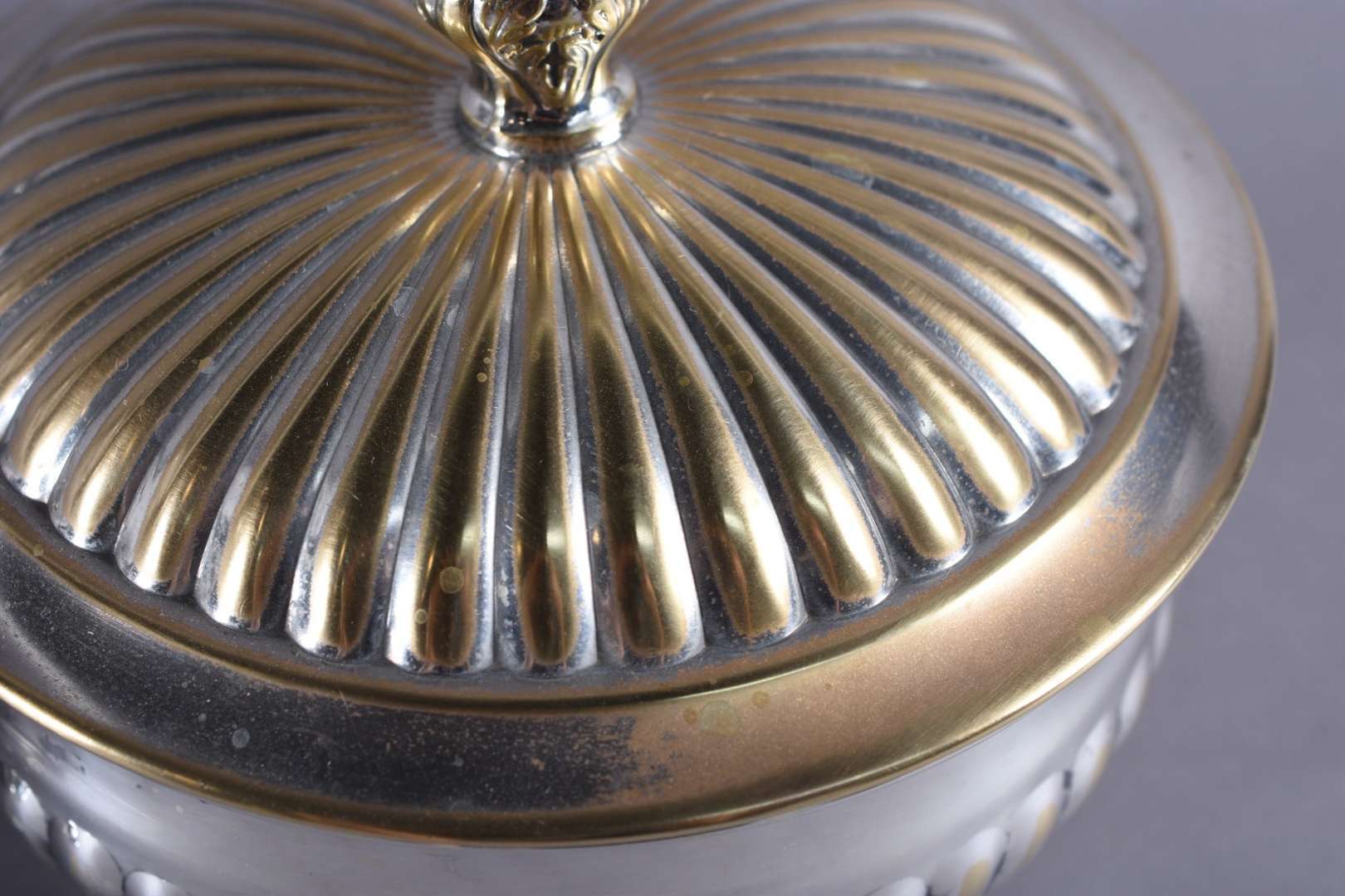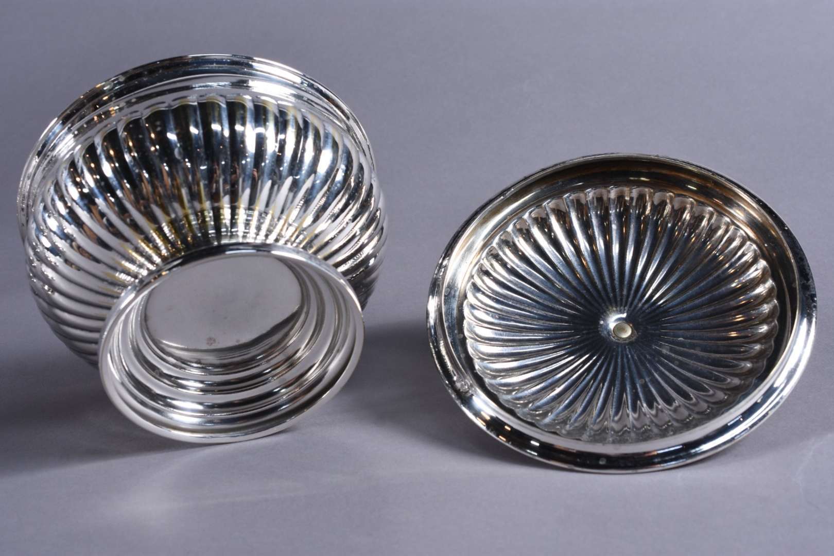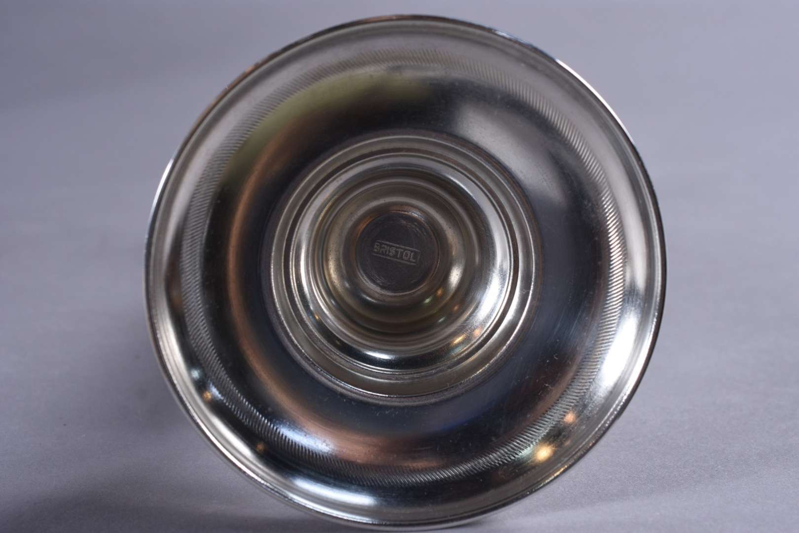Tinteiro de prata inglesa contraste leão passante, dois recipientes de cristal lapidado com tampas de prata, também c...