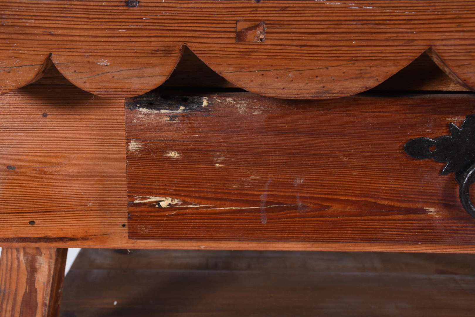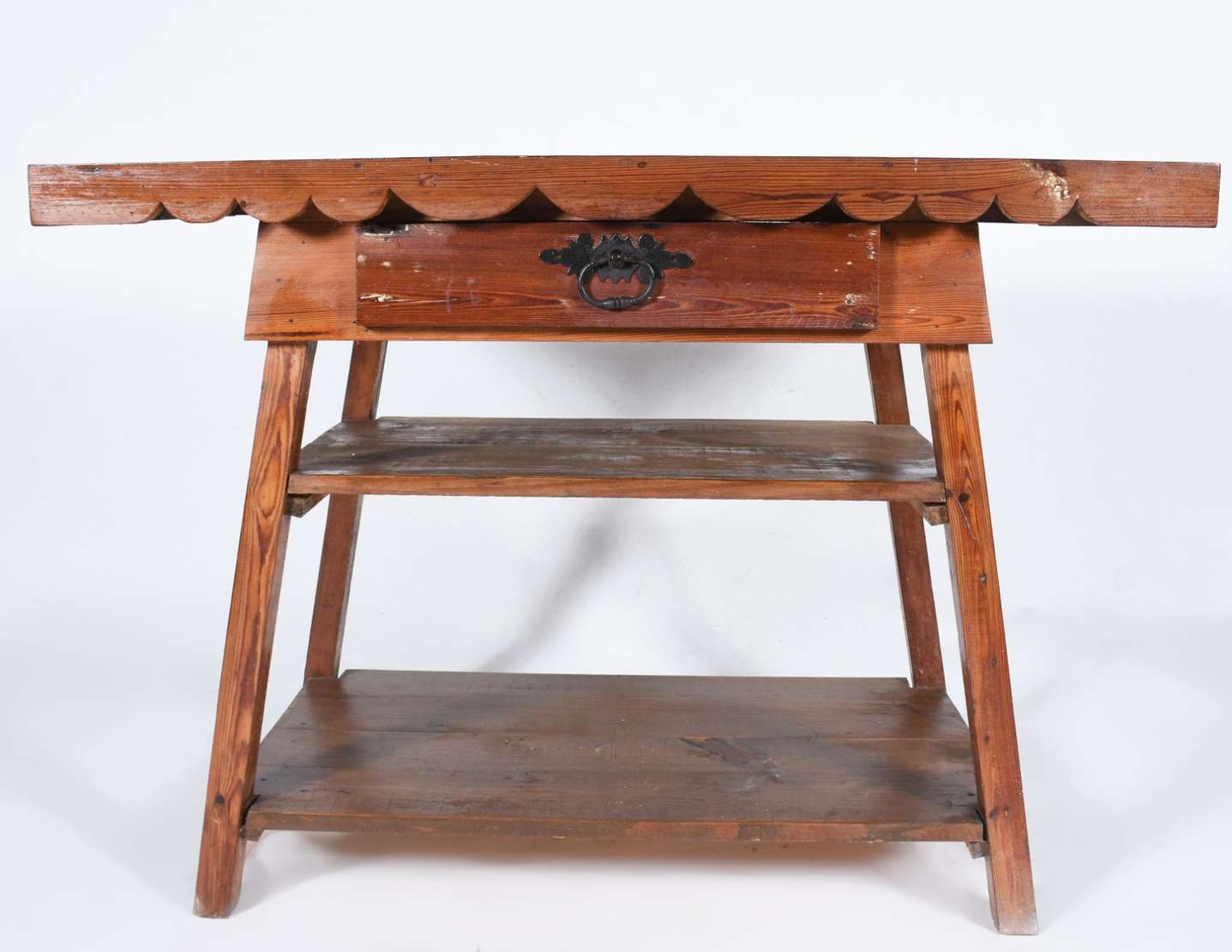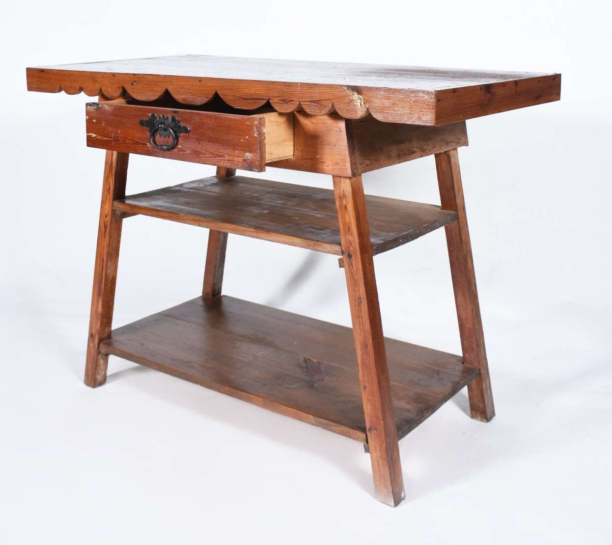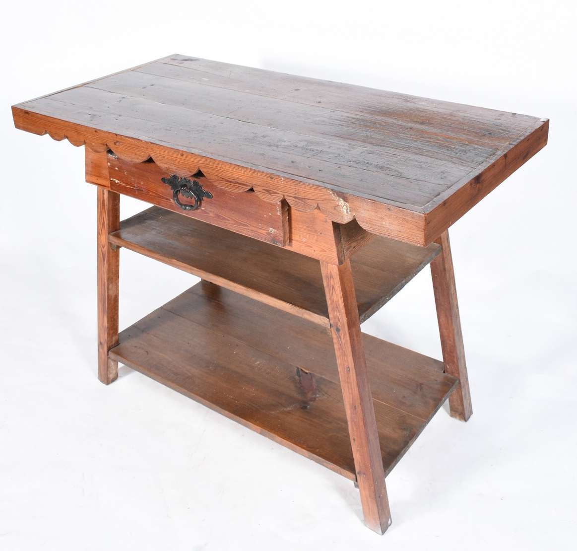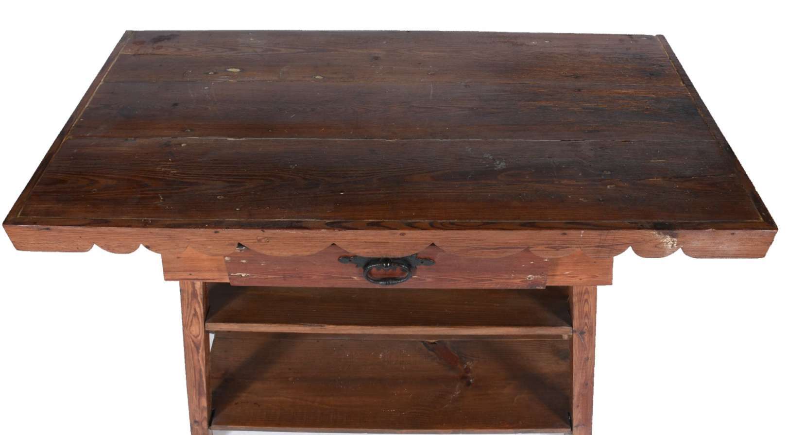 Aparador de madeira nobre, estilo colonial brasileiro, duas gavetas com puxadores de metal. Pernas laterais recortada...