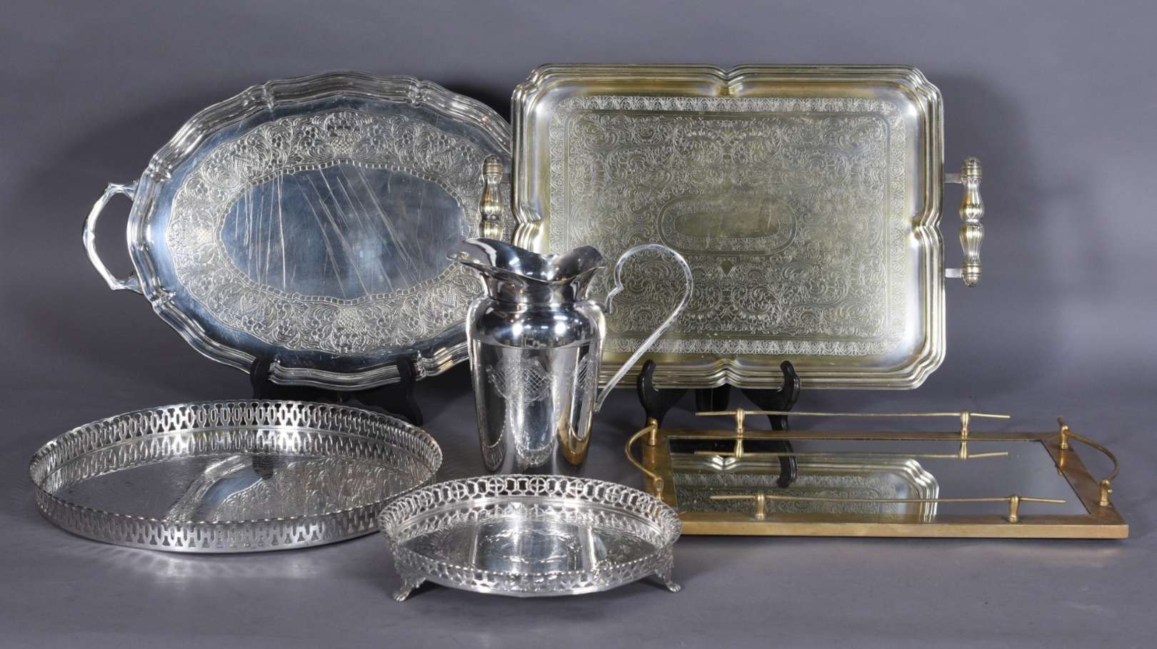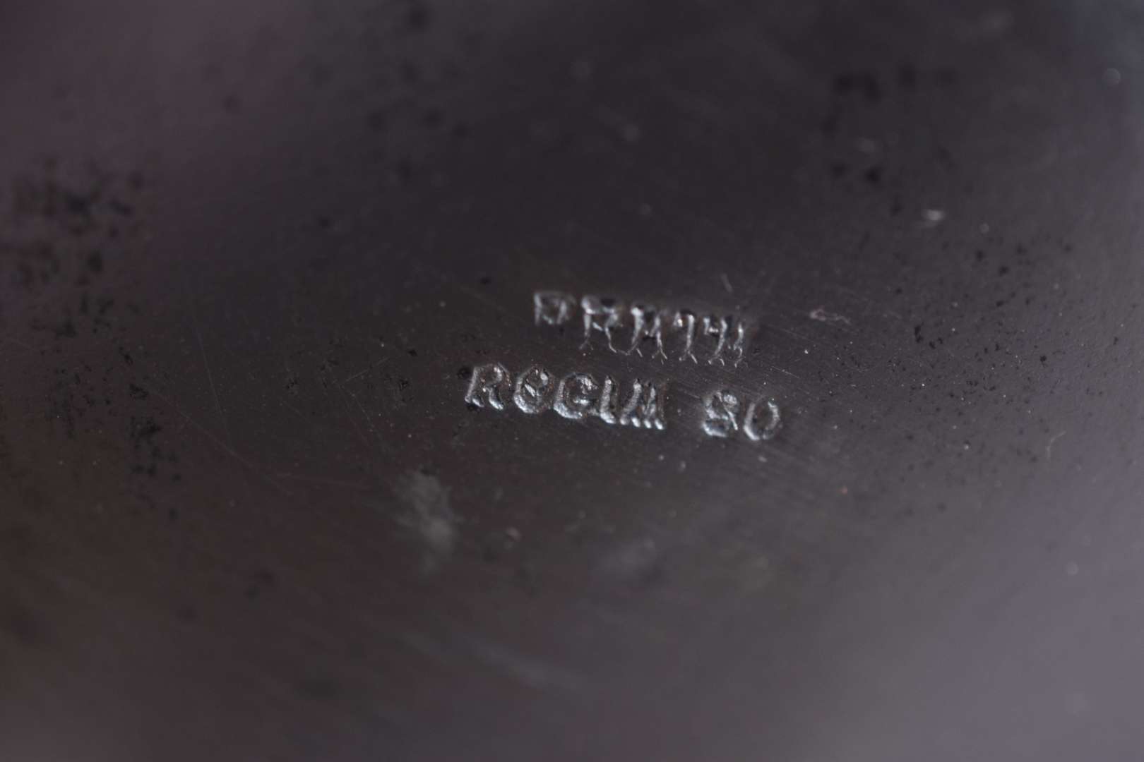 Tinteiro de prata inglesa contraste leão passante, dois recipientes de cristal lapidado com tampas de prata, também c...
