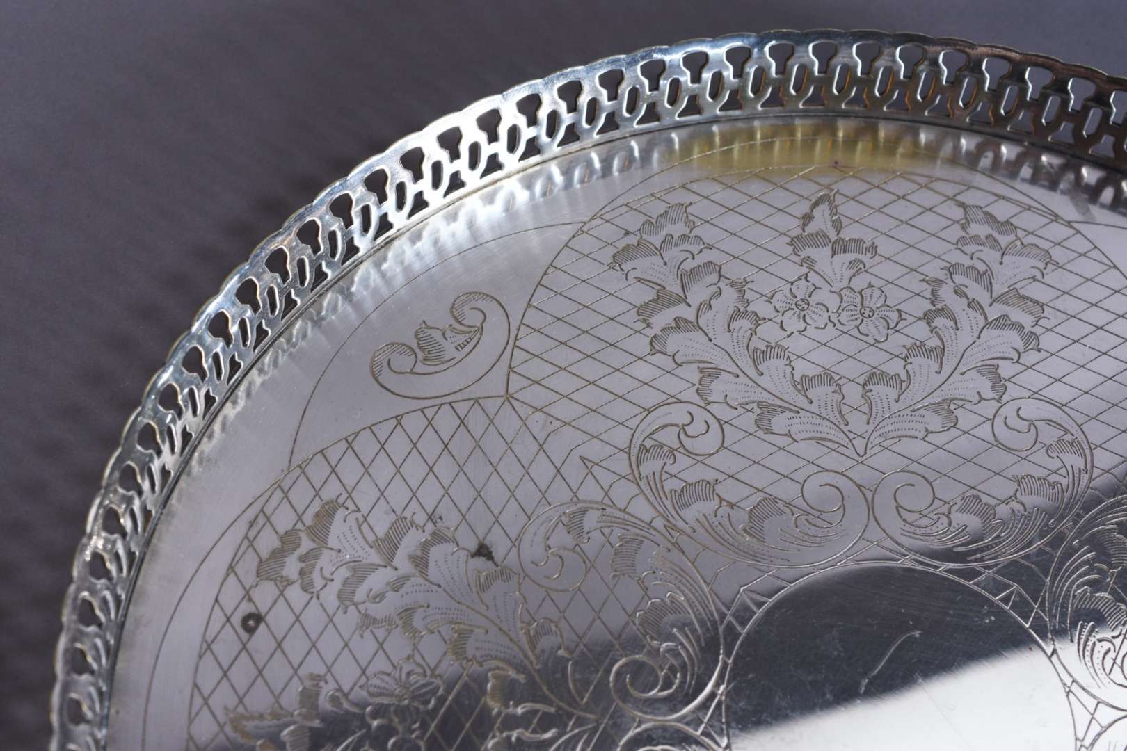 Salva de prata portuguesa, galeria com flores vazadas. Peso da prata: 730 g (Por motivos de segurança a peça não se e...