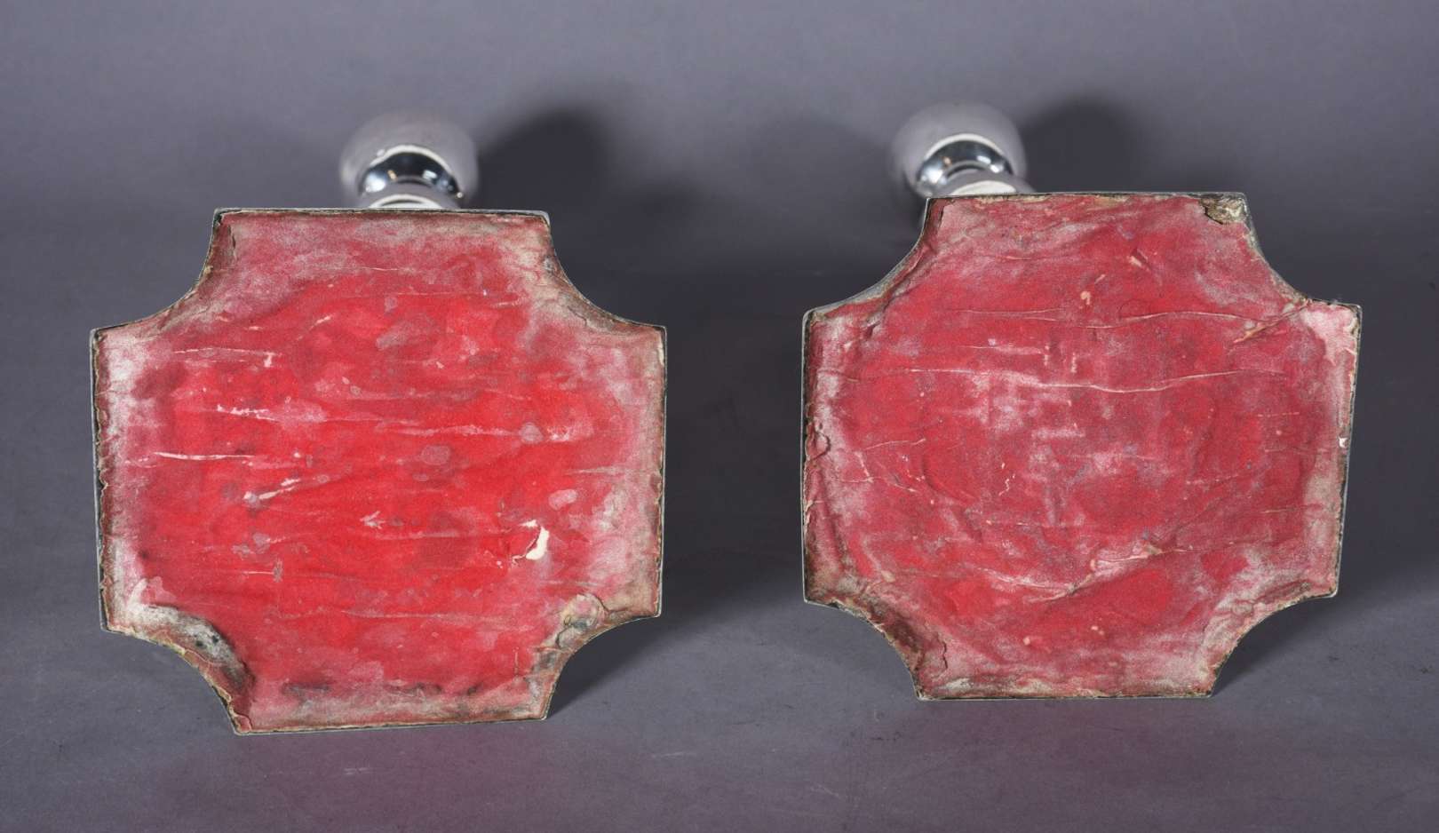 Par de candelabros para 3 velas cada de metal prateado Saint James.