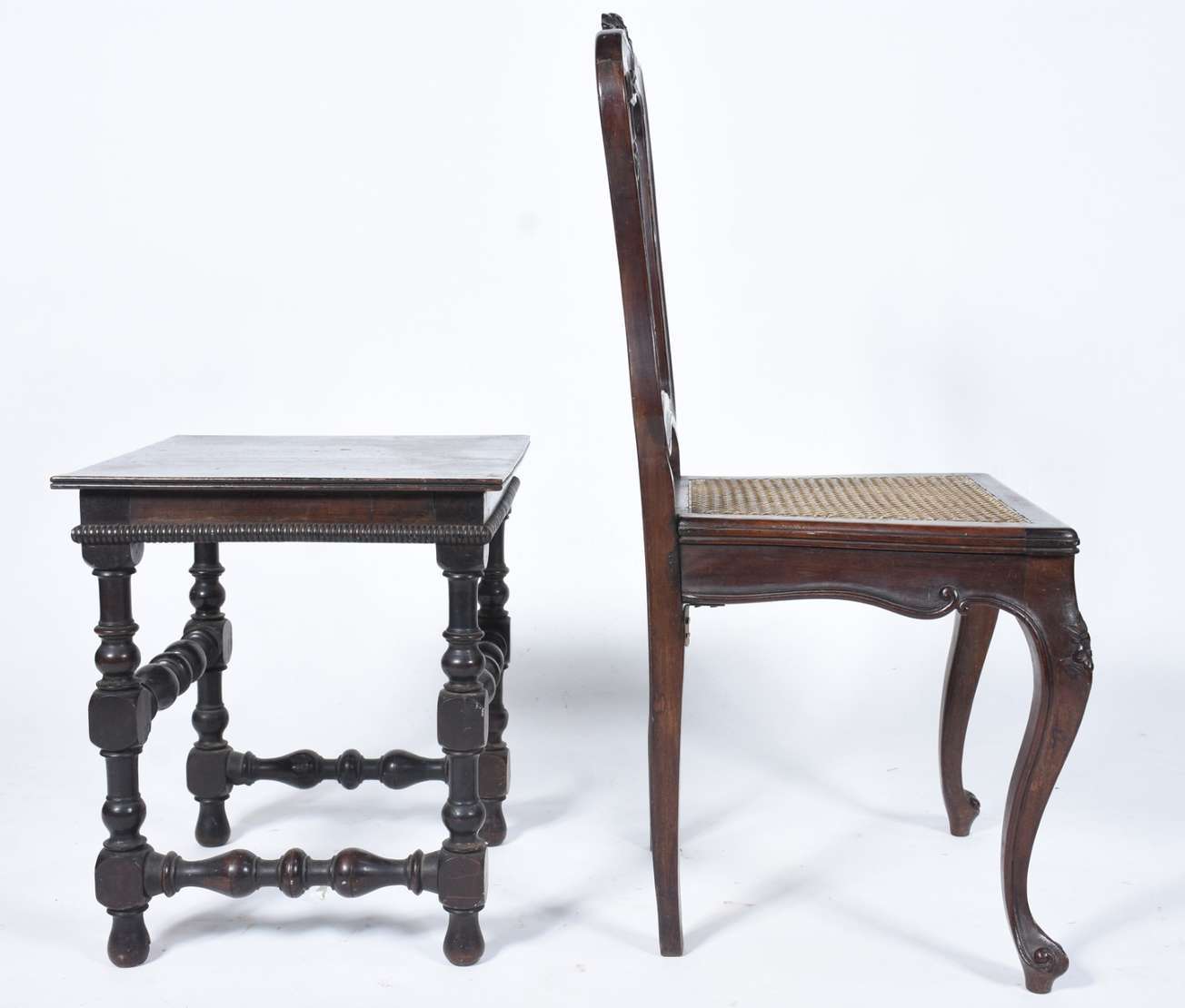 Aparador de madeira nobre, base feitio balaústre, tampo feitio retangular com mármore rajado. Tampo adaptado.