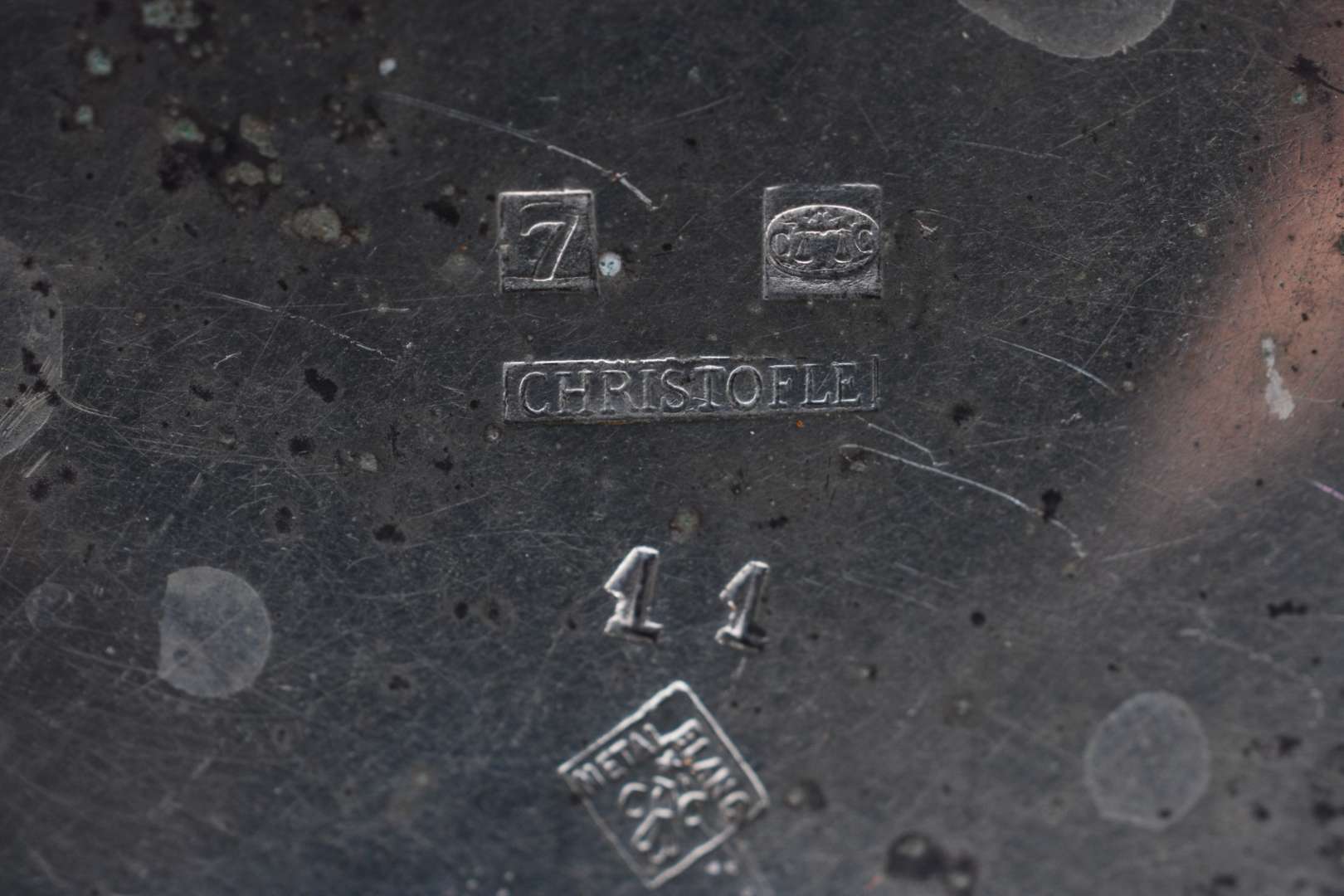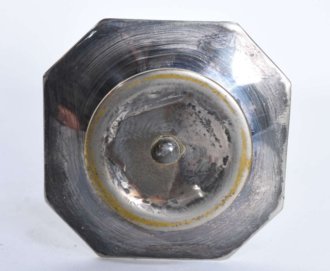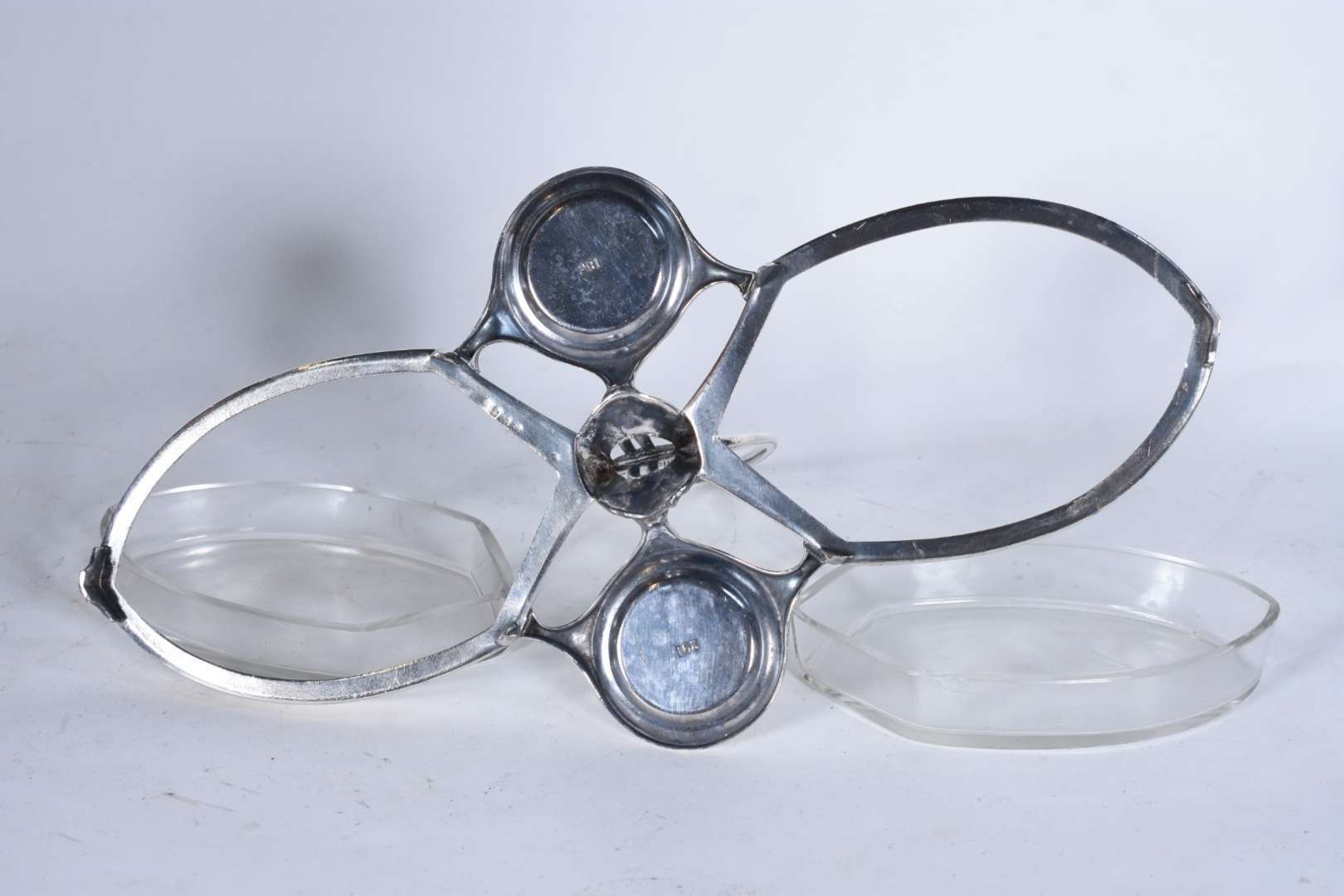 Tinteiro de prata inglesa contraste leão passante, dois recipientes de cristal lapidado com tampas de prata, também c...