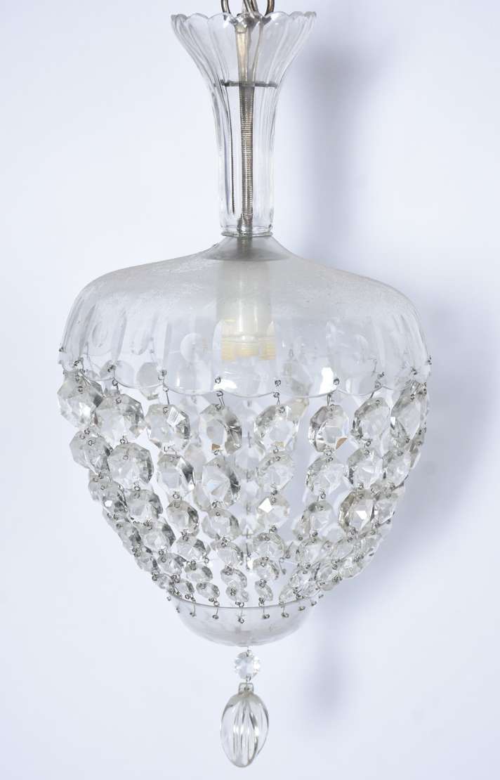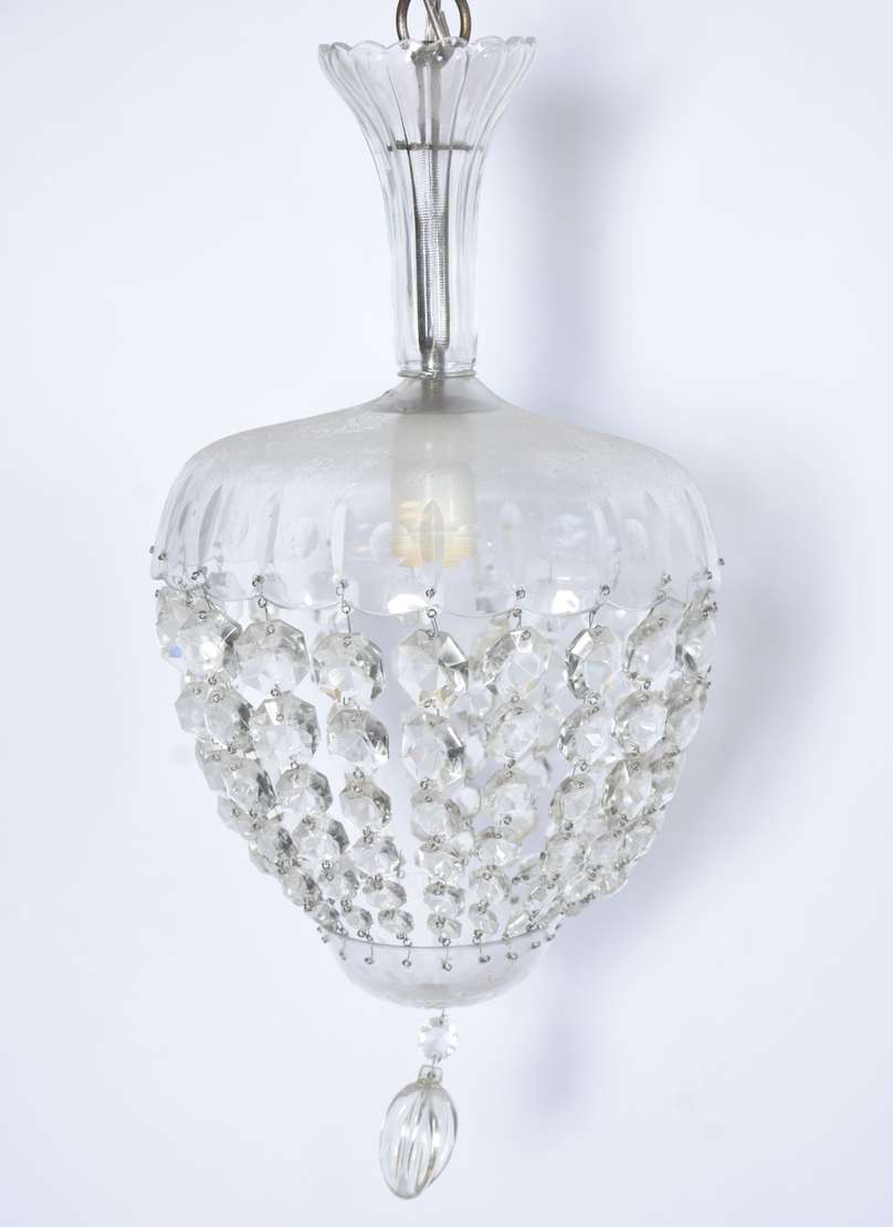 Lustre de cristal para 5 luzes, pingentes lapidados.