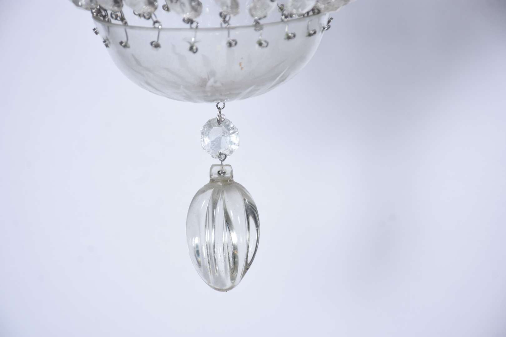 Lustre de cristal para 8 luzes com pingentes lapidados.