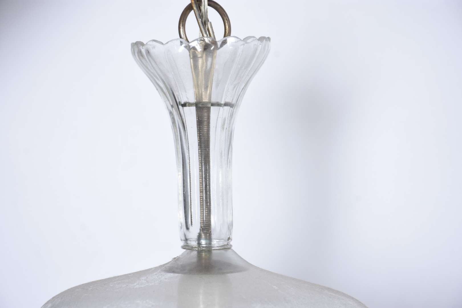 Lustre de metal e mangas na forma de flor em cristal fosco, para 8 luzes.