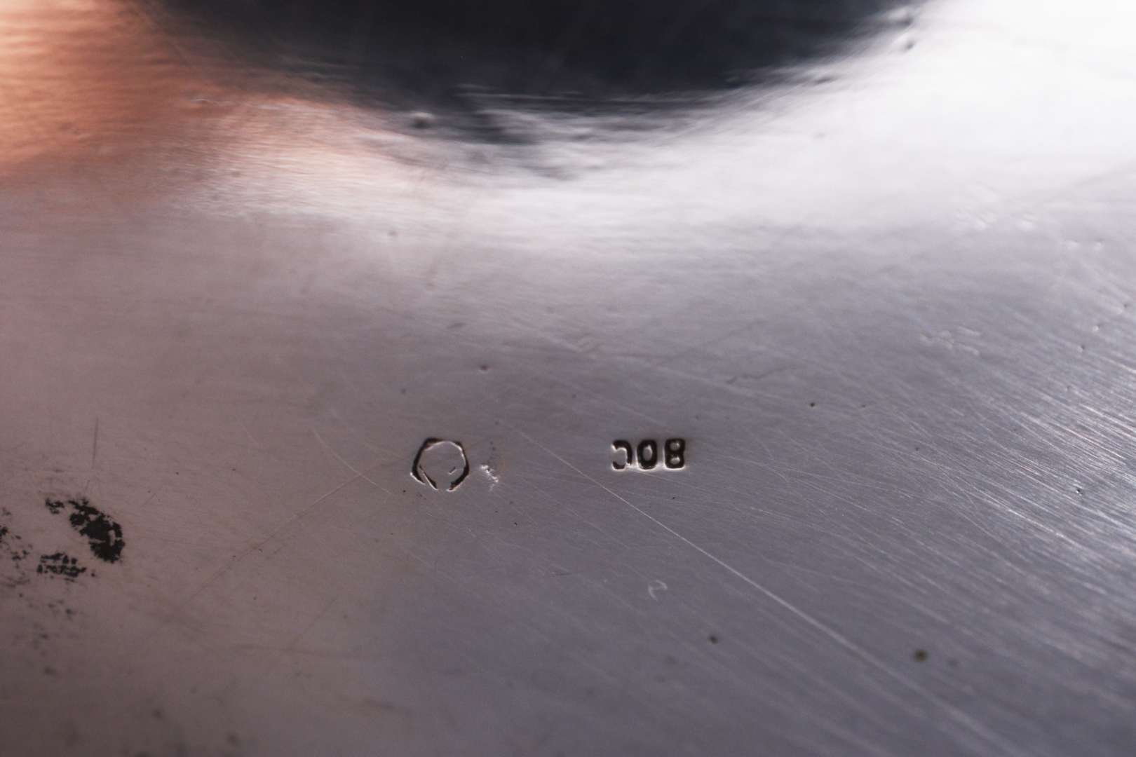 Salva Dona Maria de prata contrastada, frisos guilhochados e pés de garra. Peso da prata: 500 g (Por motivos de segur...