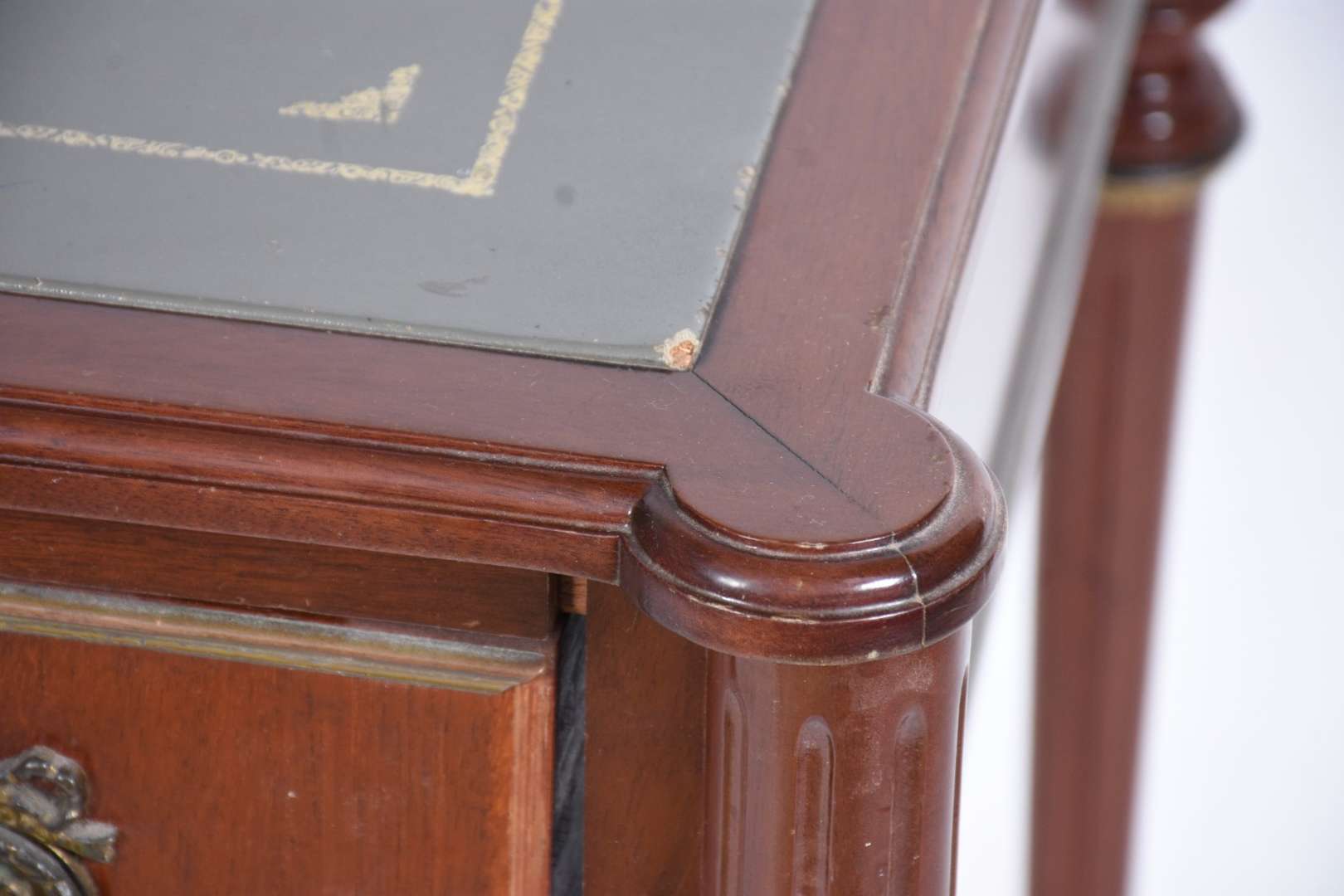 Par de mesas laterais de madeira nobre com 2 gavetas, puxadores de metal na forma de argolas. Estilo colonial brasile...