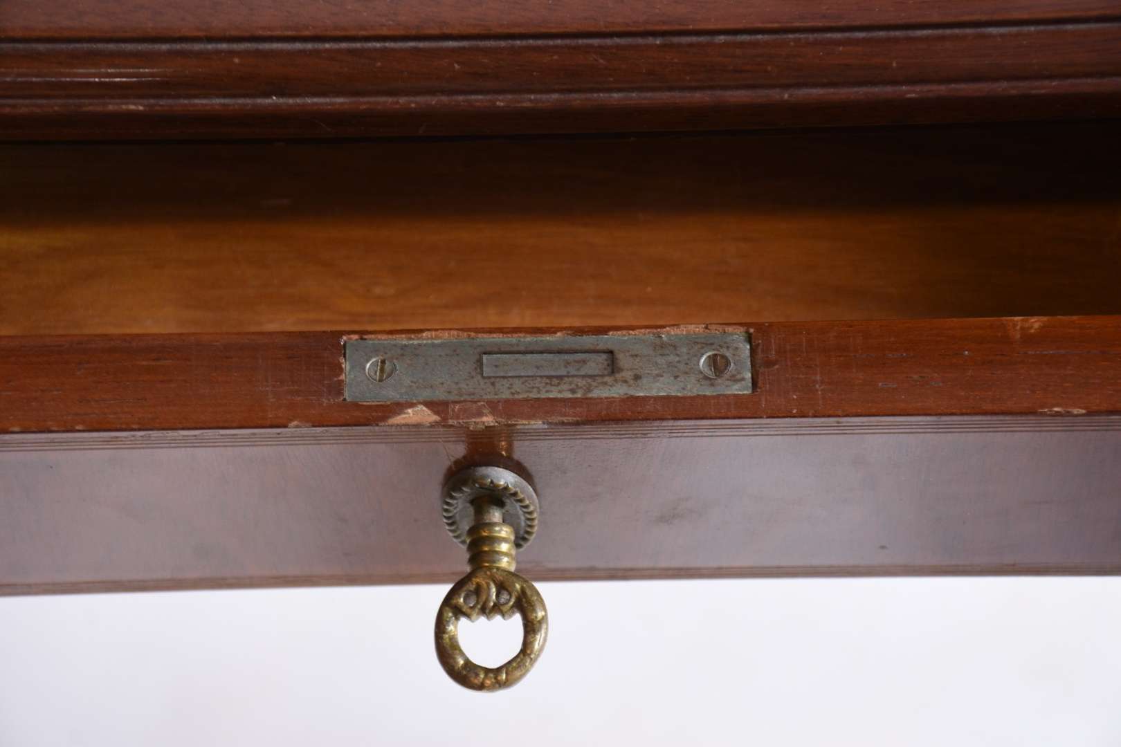 Arca de madeira nobre estilo colonial brasileiro, platô articulado e duas gavetas na parte inferior.
