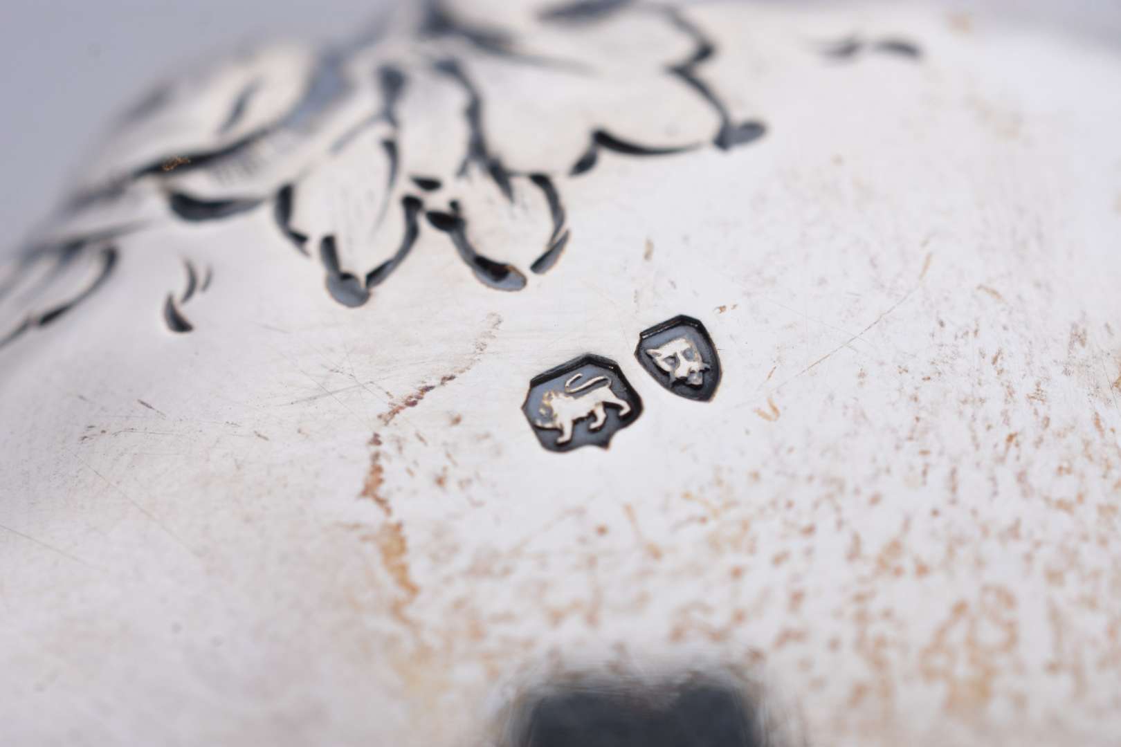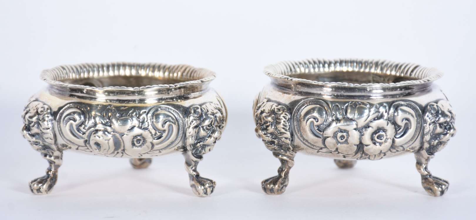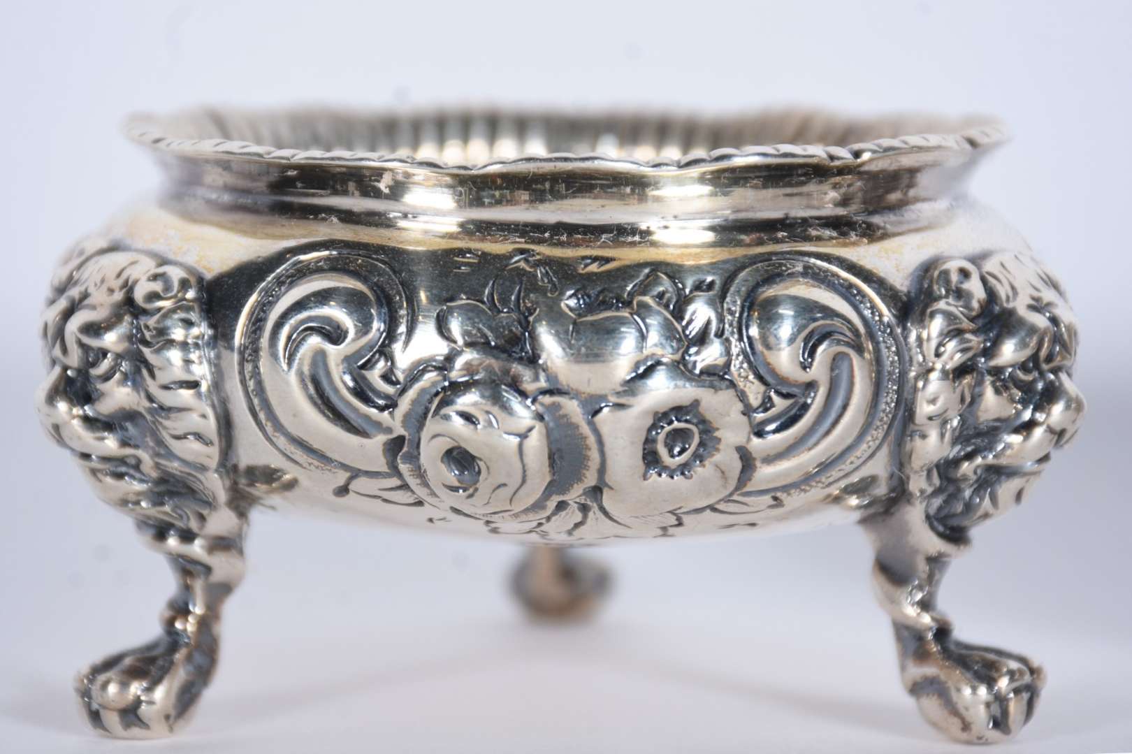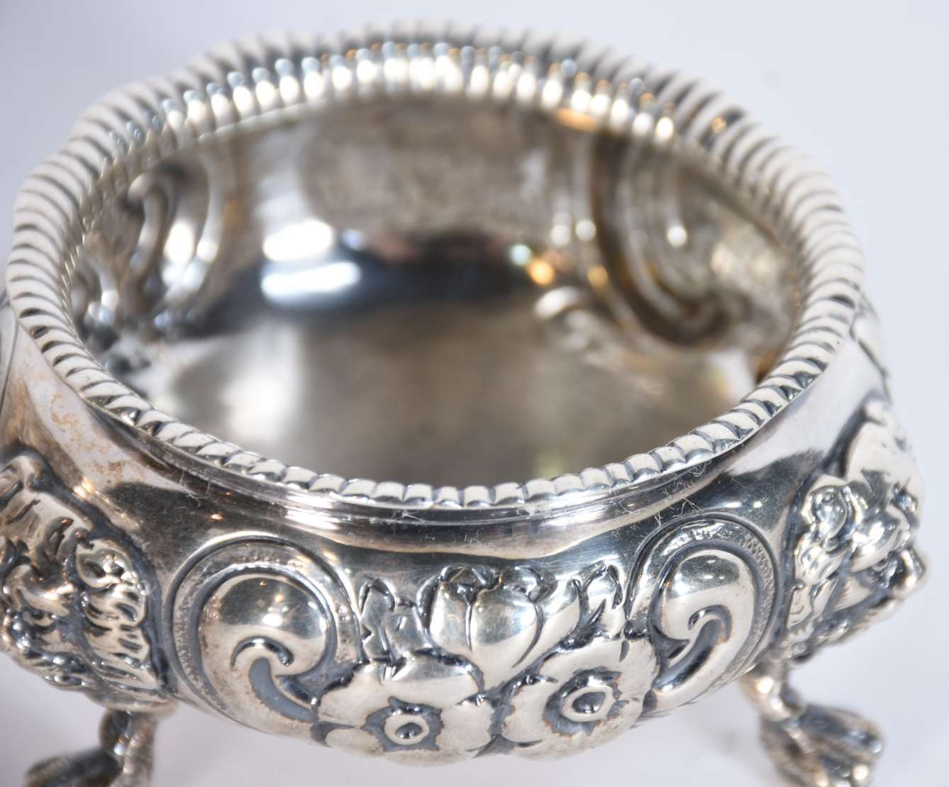 Salva Dona Maria de prata contrastada, frisos guilhochados e pés de garra. Peso da prata: 500 g (Por motivos de segur...
