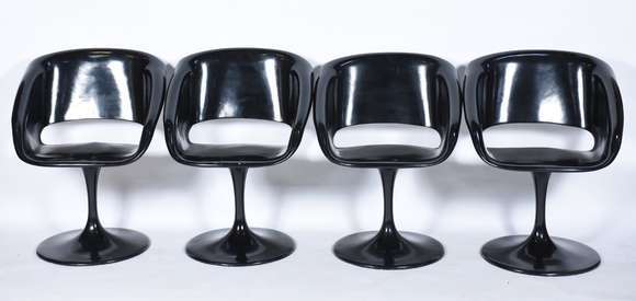 Quatro cadeiras de fibra na cor preta, anos 70.
