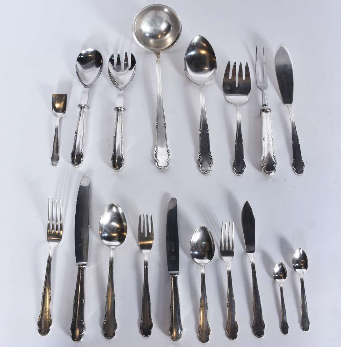 Aparelho de jantar de porcelana portuguesa composto de: 23 pratos rasos, 12 pratos fundos, 12 pratos de sobremesa (1 ...