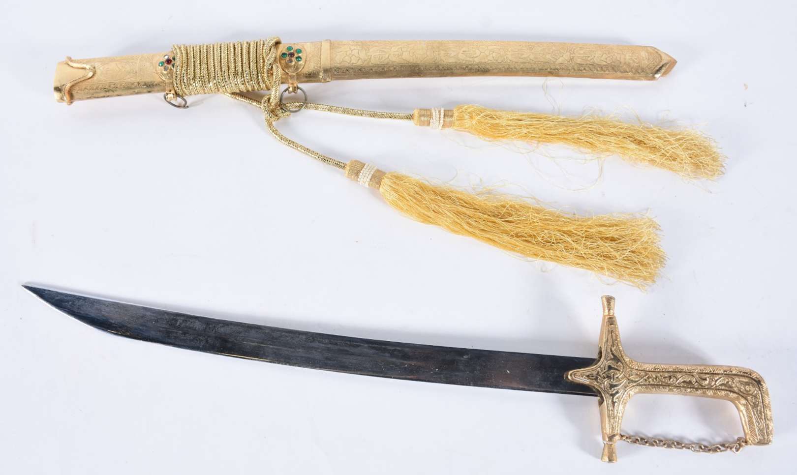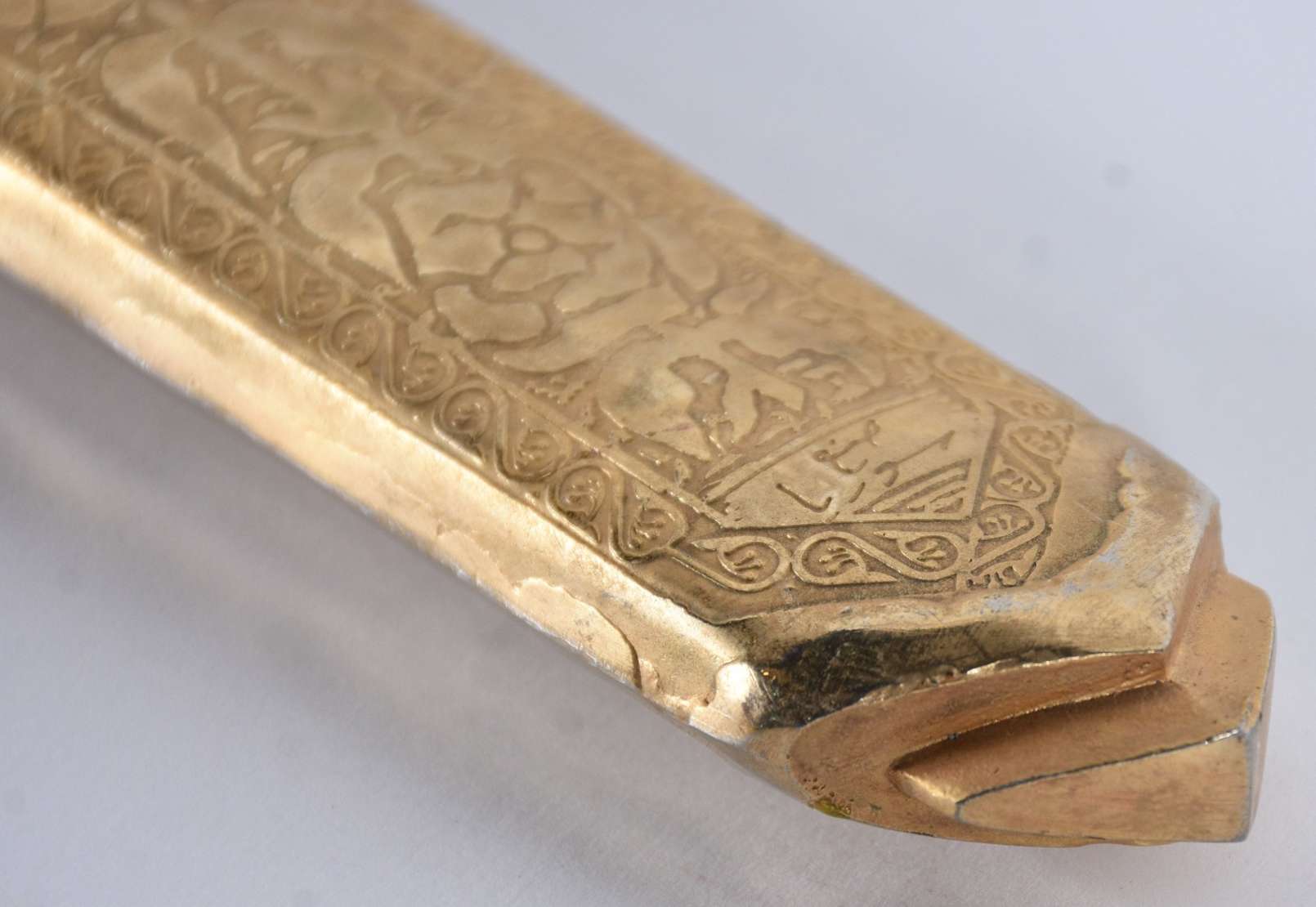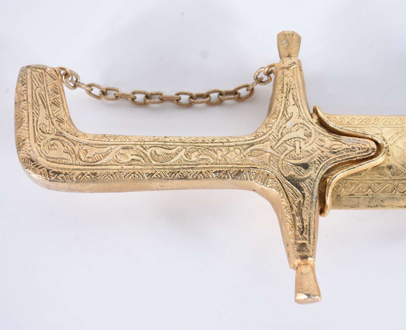 Adaga de metal com bainha trabalhada.