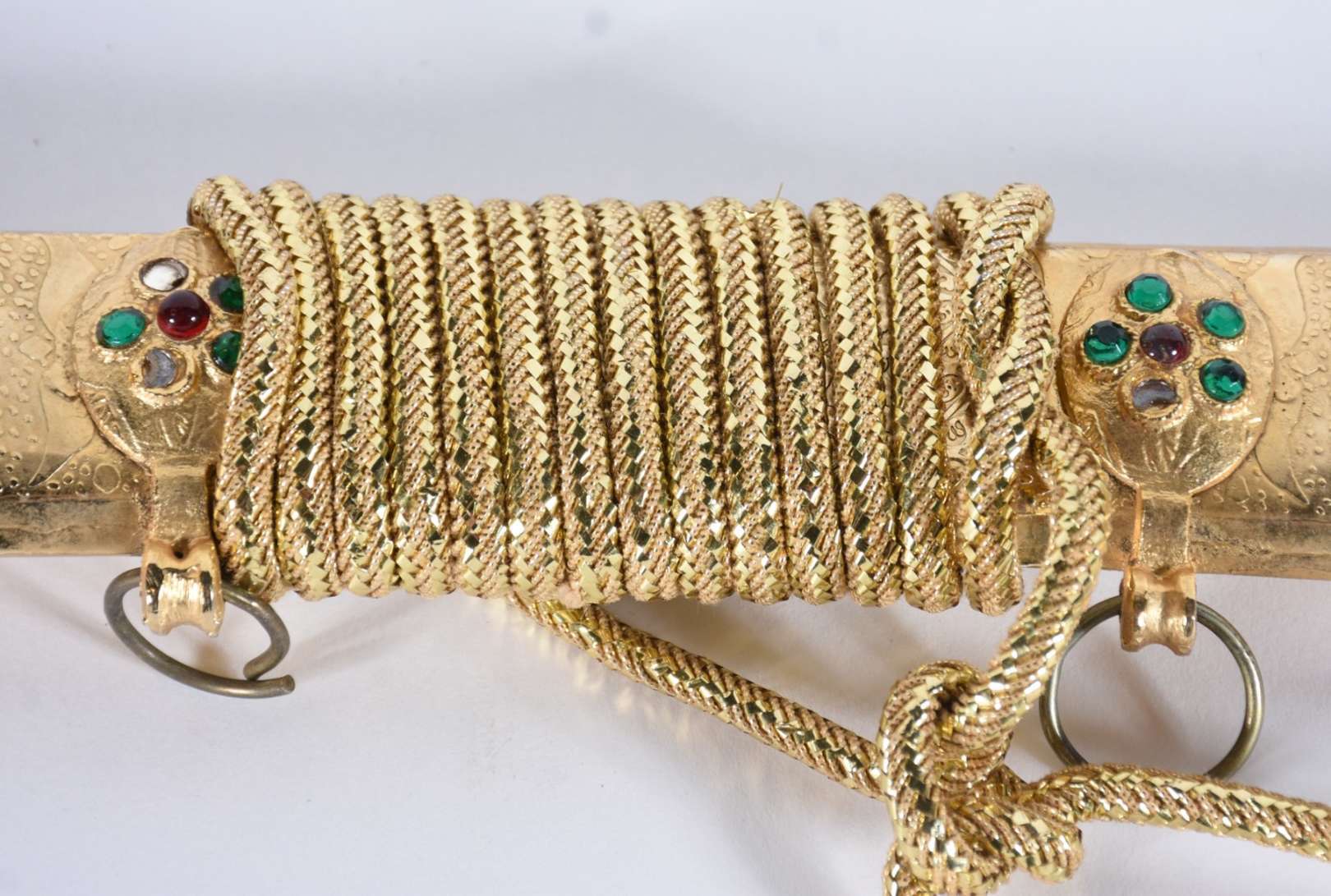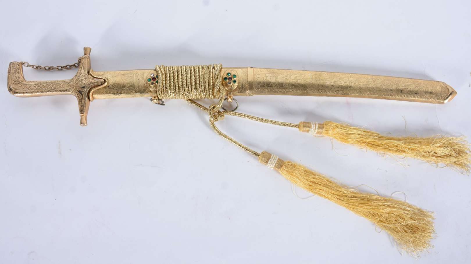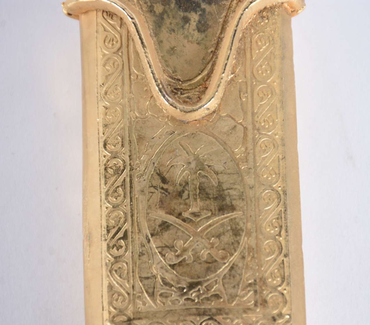Adaga de metal com bainha trabalhada.
