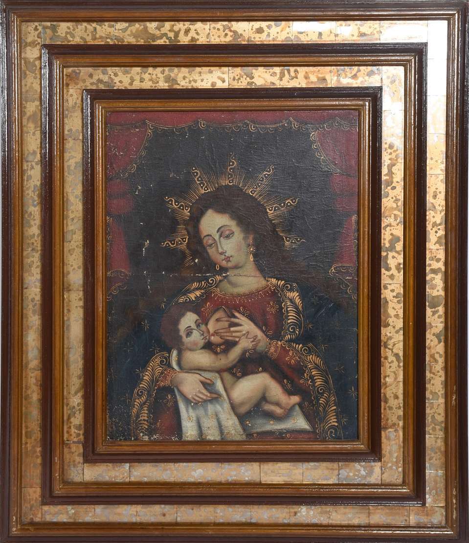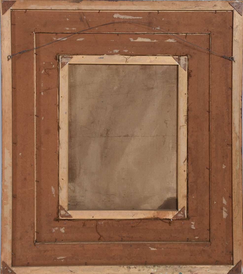 Óleo sobre tela. Pequeno arranhado e 3 pequenos furos. Ricamente emoldurado.
