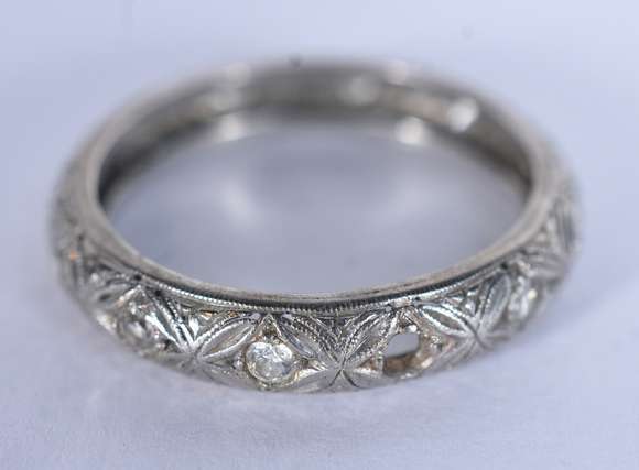 Aliança de platina com brilhantes, aro 20. Faltando um brilhante (Por motivos de segurança a peça não se encontra na ...