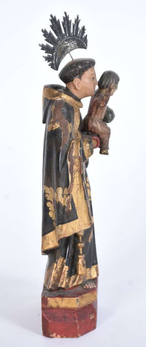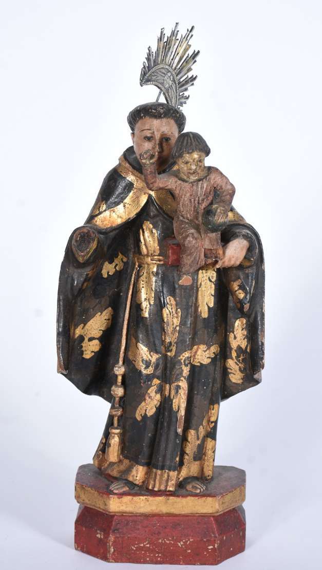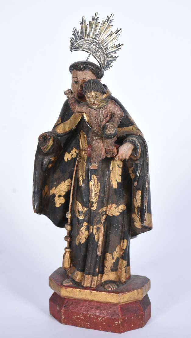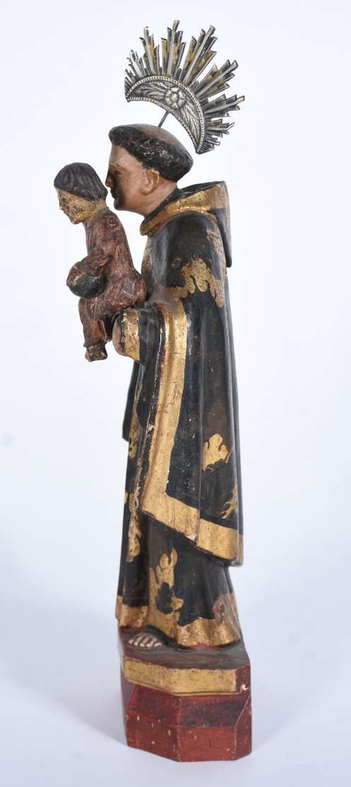 Santo Antônio - Imagem em madeira policromada, realces em dourado com cruz de prata - Portugal, século XIX. Apresenta...