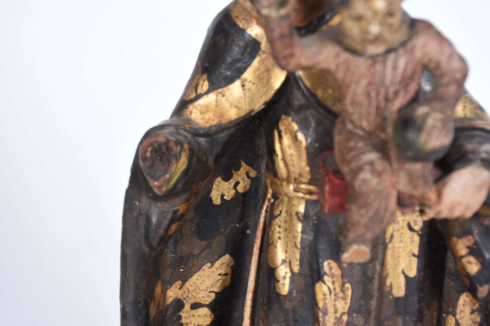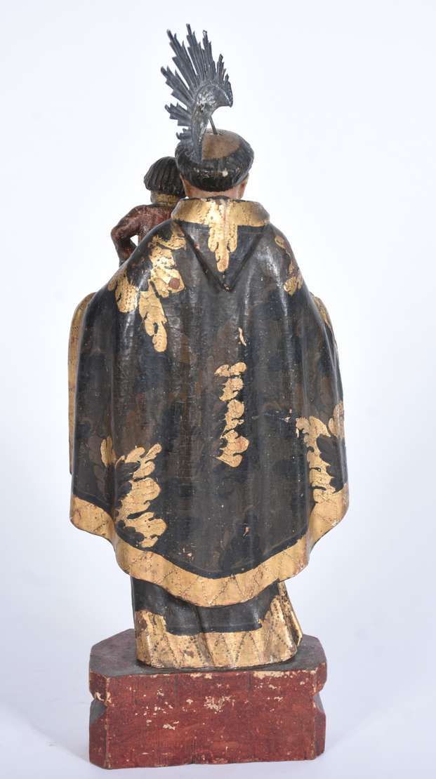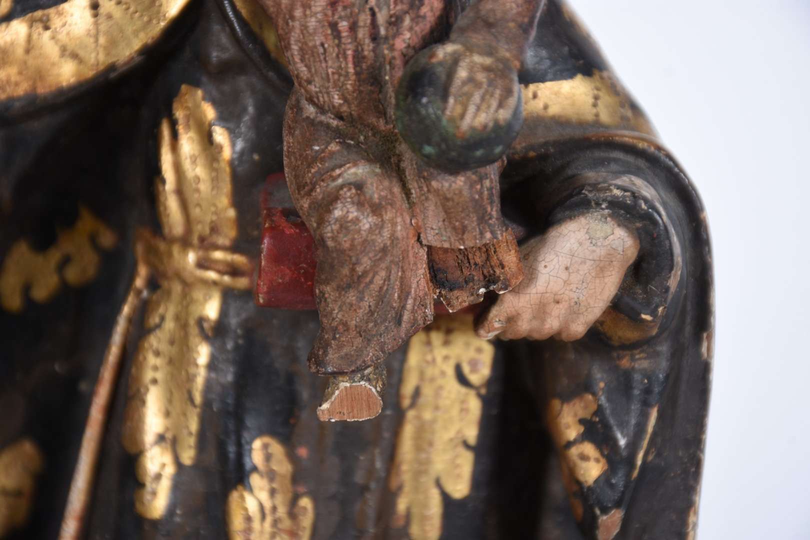 Imagem de madeira policromada com resplendor de prata (sem os dedos de uma das mãos).