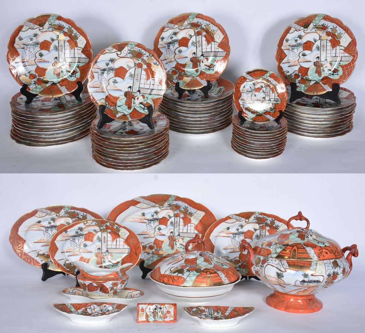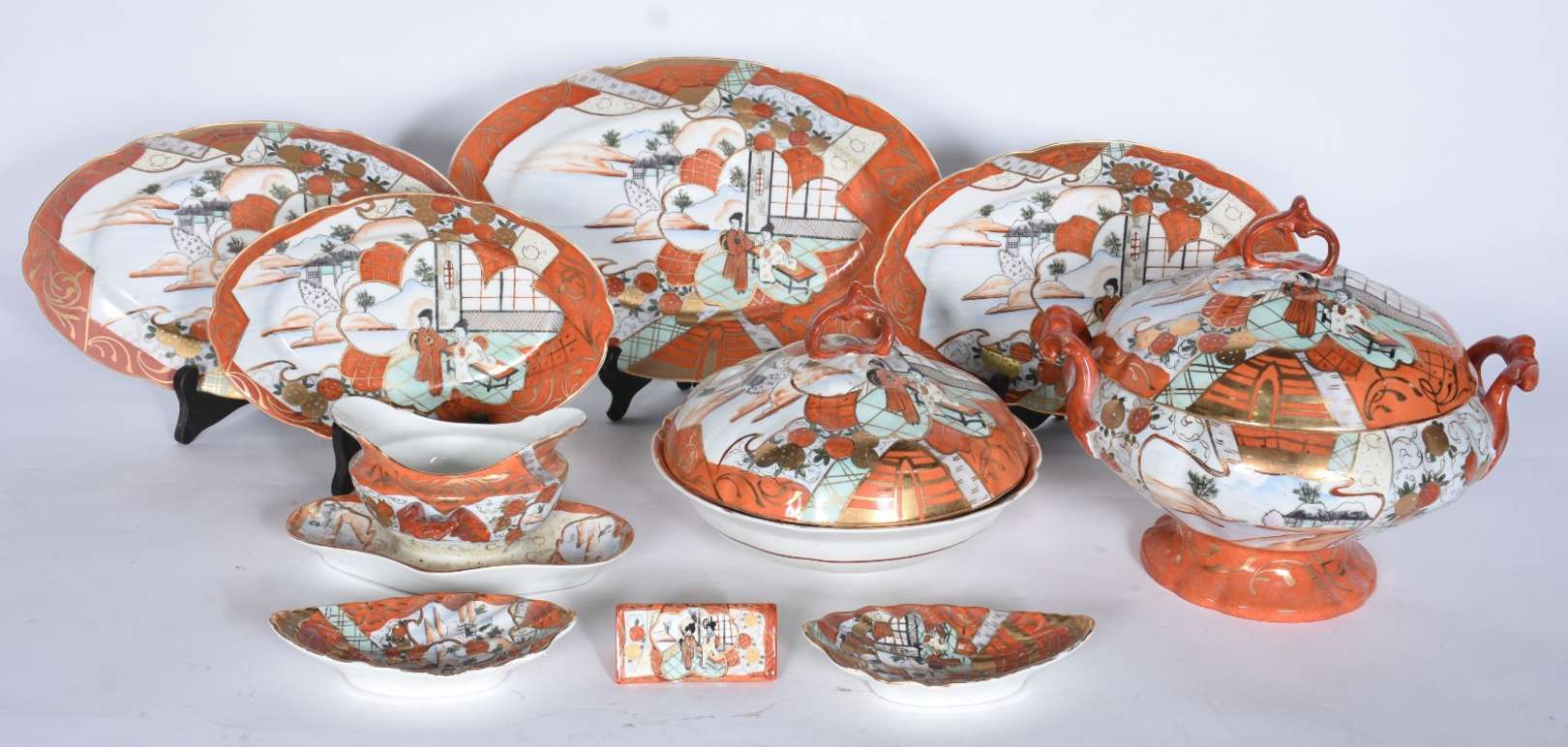 Parte de serviço de faiança inglesa "Manchu", Alfred Meakin, decoração "azul pombinho", composto de: legumeira, frute...